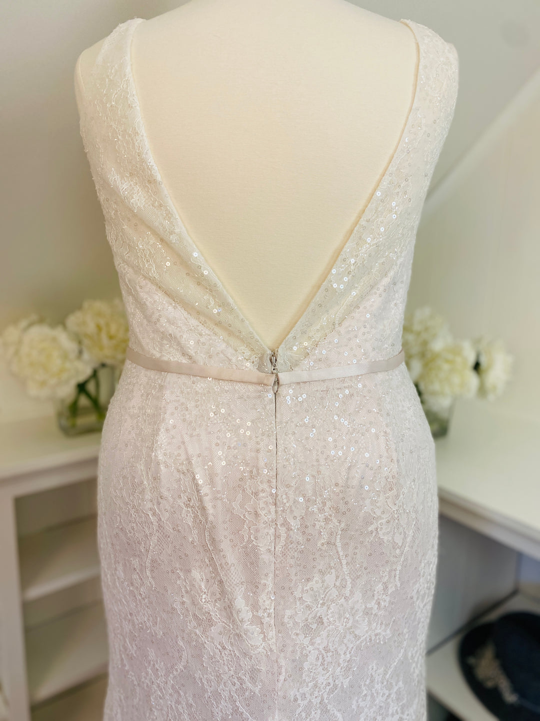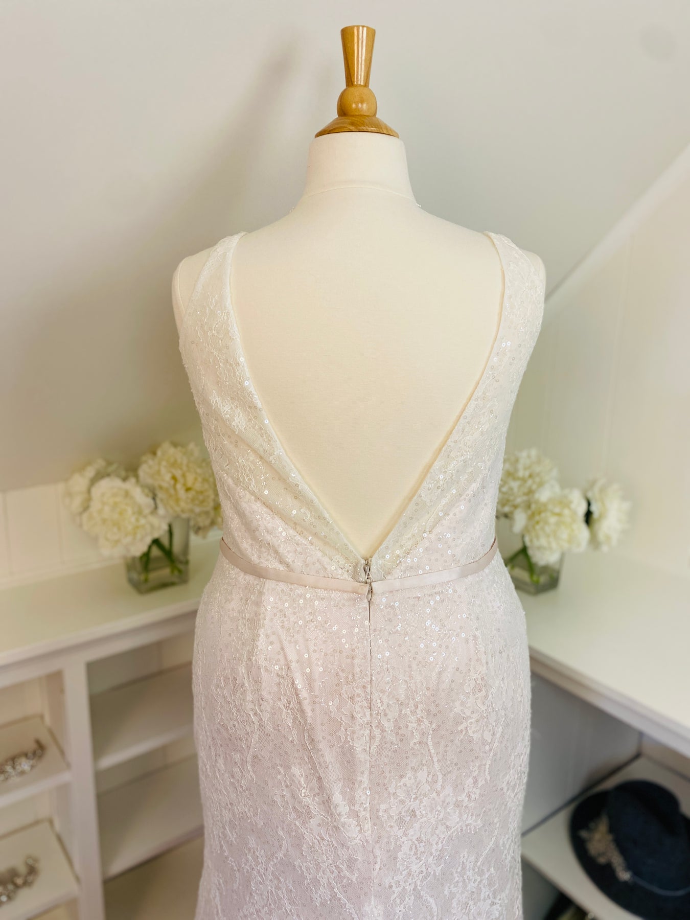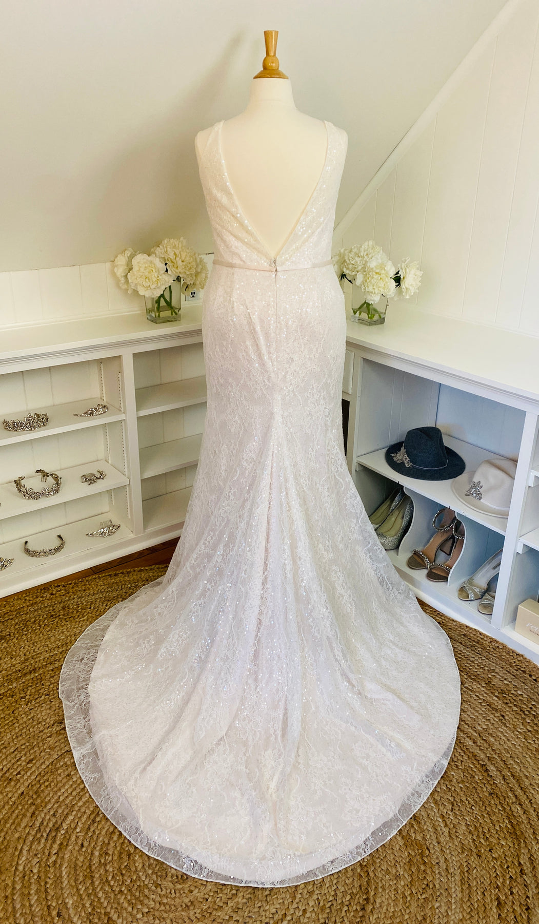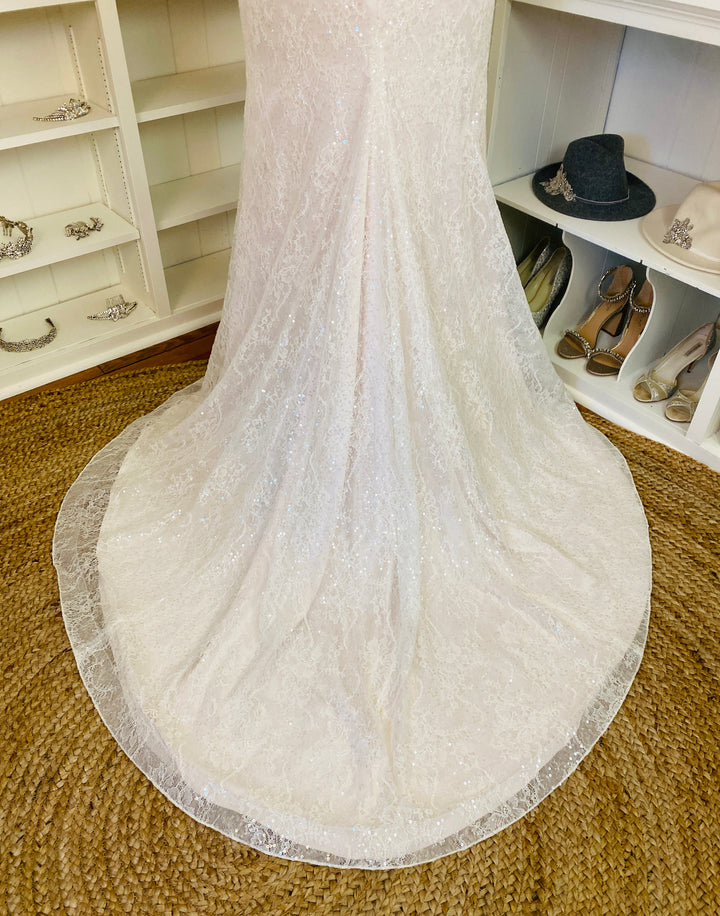 Sale wedding dresses, bridal party dresses and bridal accessories come to us directly from small independent retailers and brands and are mostly discontinued samples.  This merchandise has never been previously purchased or altered, and while most of these goods are in immaculate condition normal wear and tear can occur during previous try on.  Any defects outside of normal wear are disclosed in each listing.