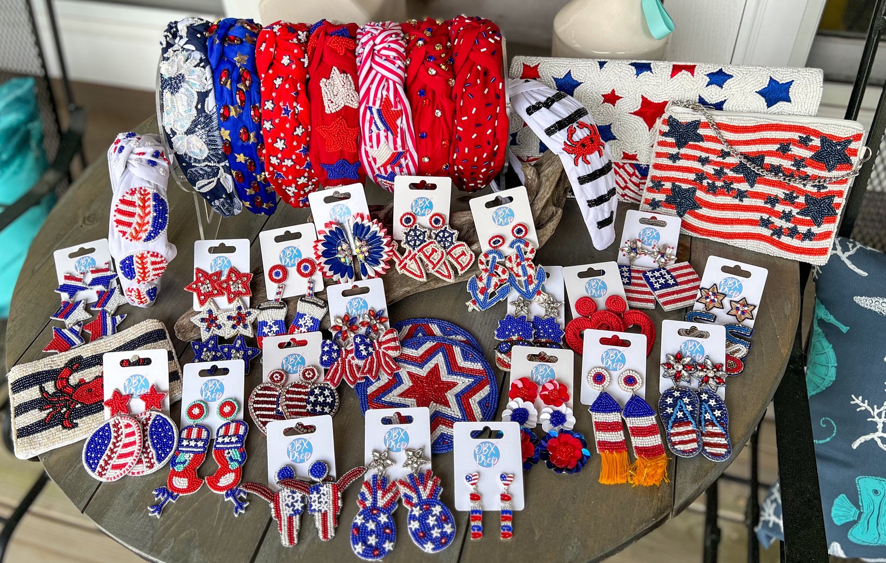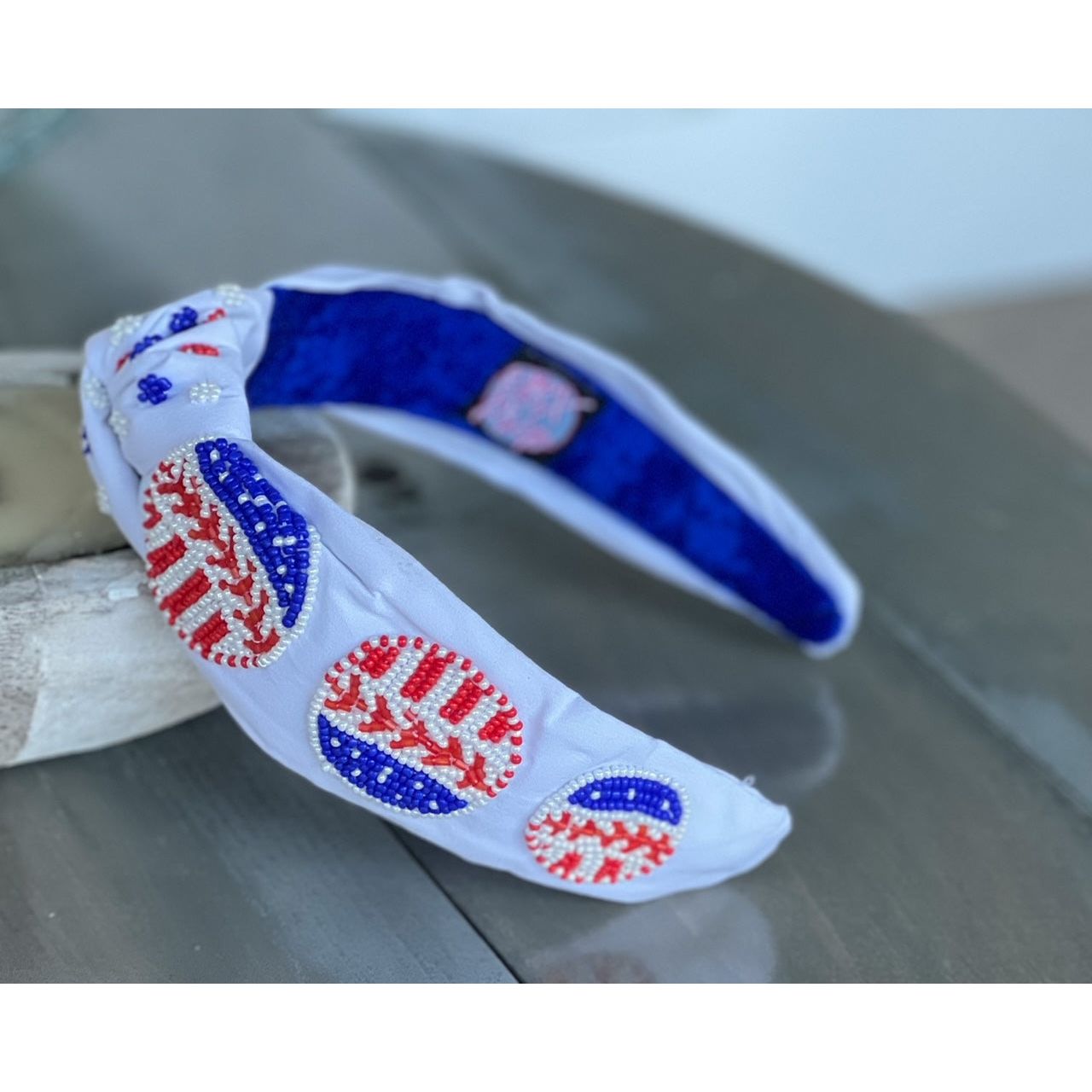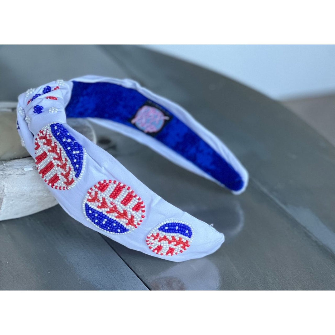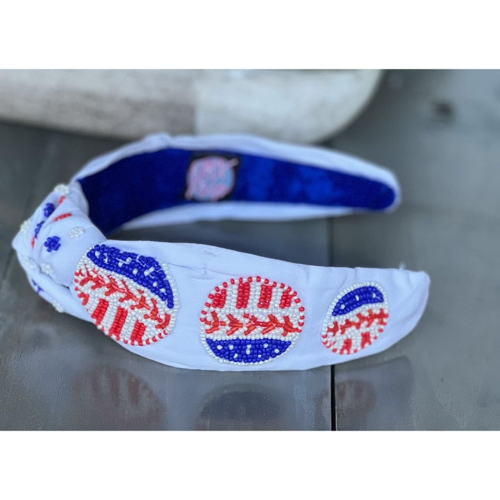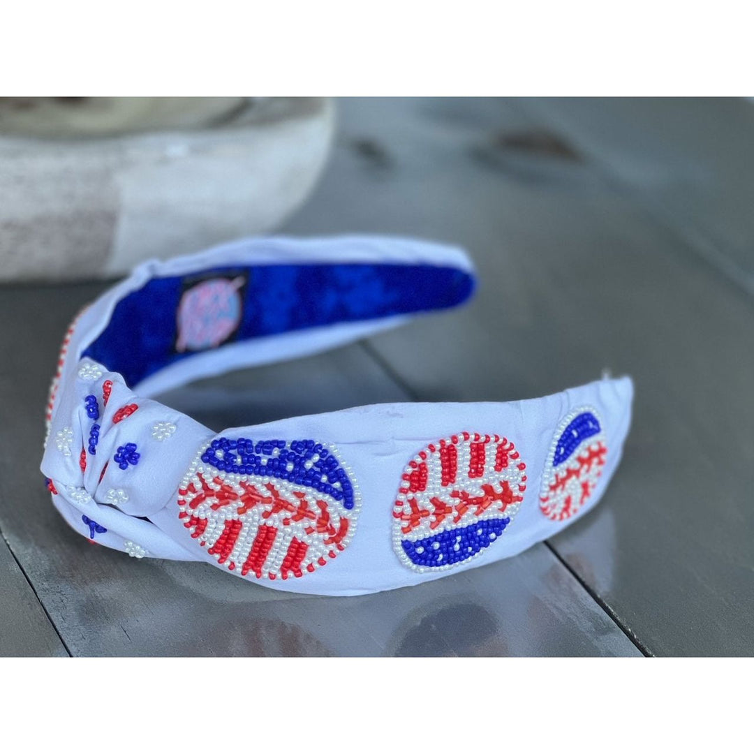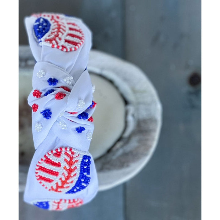 Patriotic Baseball Seed Beaded Top Knot Headband by OBX Prep