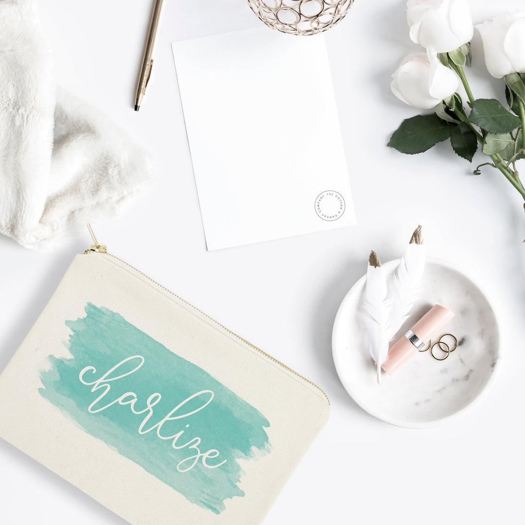 Personalized Name Aqua Watercolor Cosmetic Bag and Travel Make Up Pouch by The Cotton & Canvas Co.