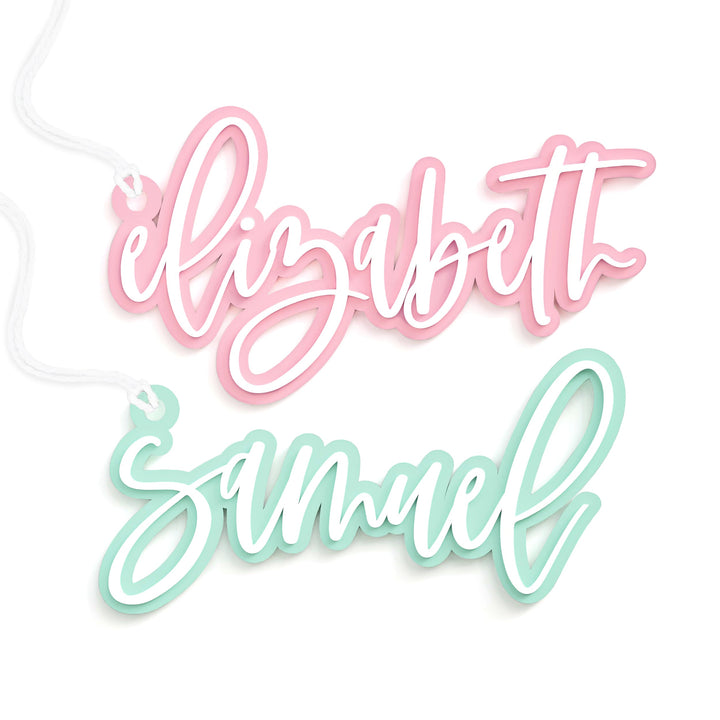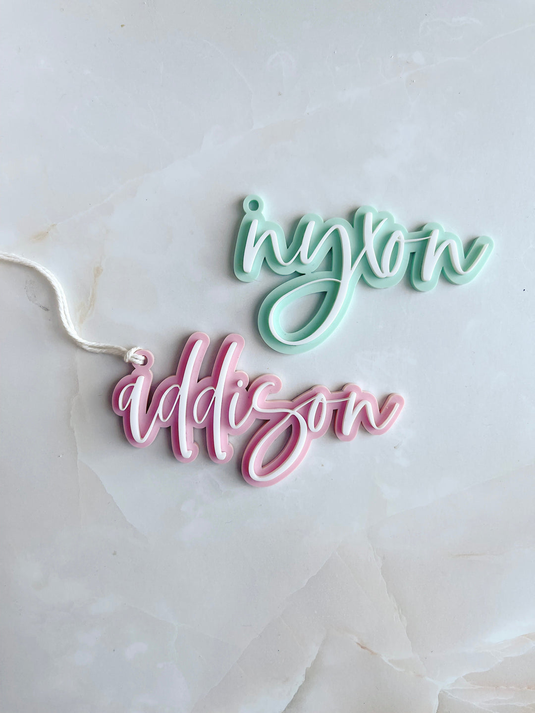 Our acrylic personalized name gift tags add an adorable touch to your gift baskets! Personalized using beautiful modern calligraphy, these 3D laser cut tags add a pop of fun to your wedding, birthday, and holiday gifts. Mix and match and choose from a variety of colors!