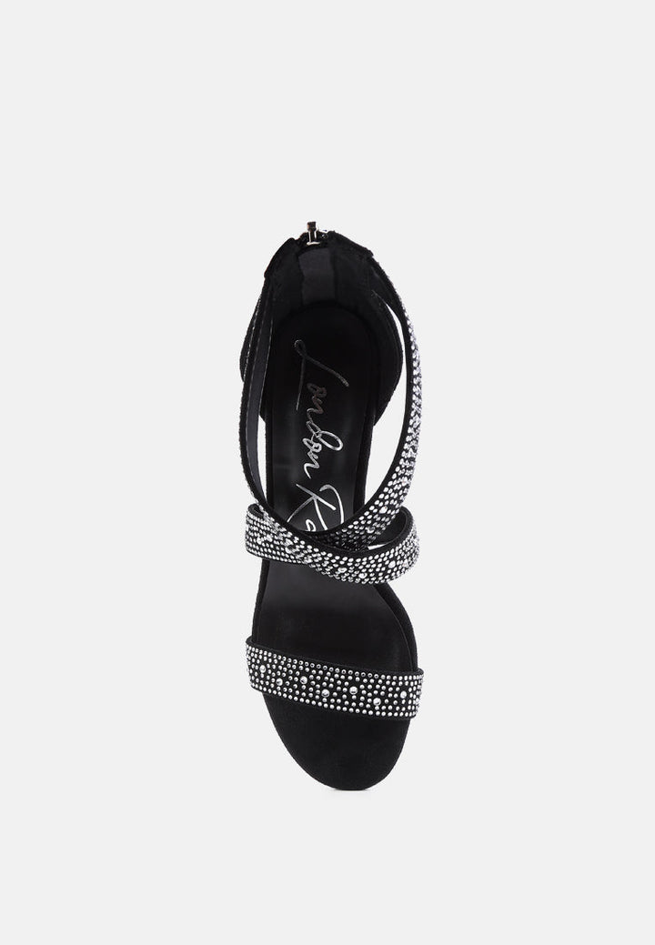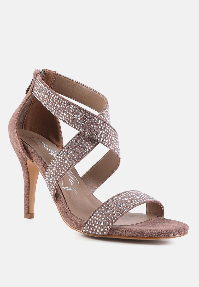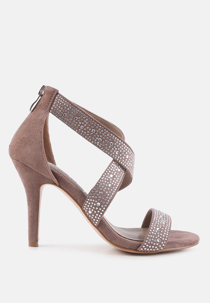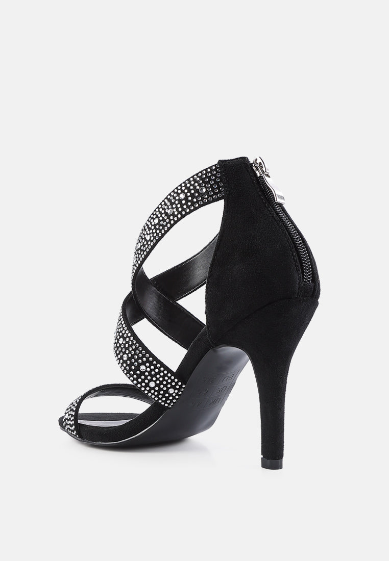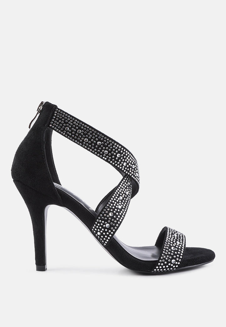 Stylish, back zipper encased high heeled sandals with heat-set rhinestone detail along the straps looks beautiful and is easy to wear. Has soft cushioning which cuts the stress.
