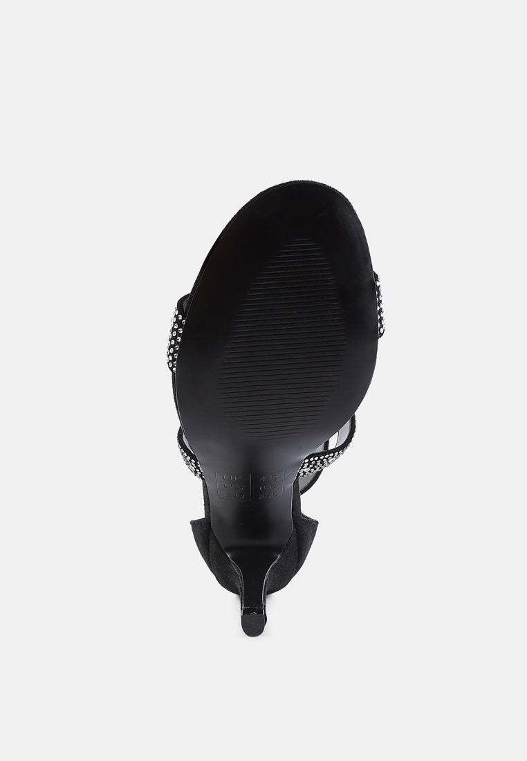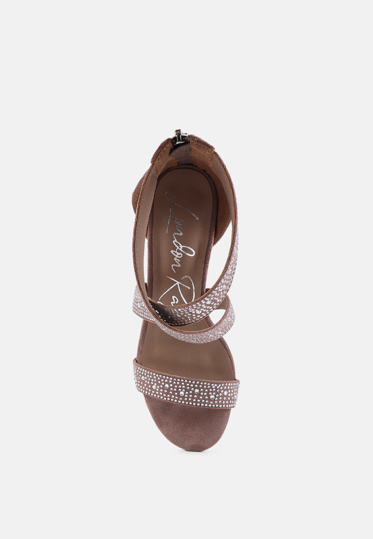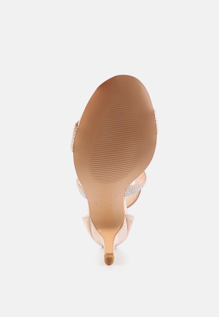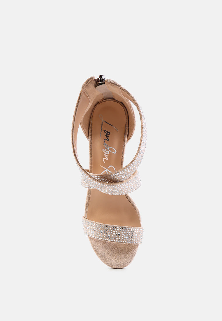 Stylish, back zipper encased high heeled sandals with heat-set rhinestone detail along the straps looks beautiful and is easy to wear. Has soft cushioning which cuts the stress.