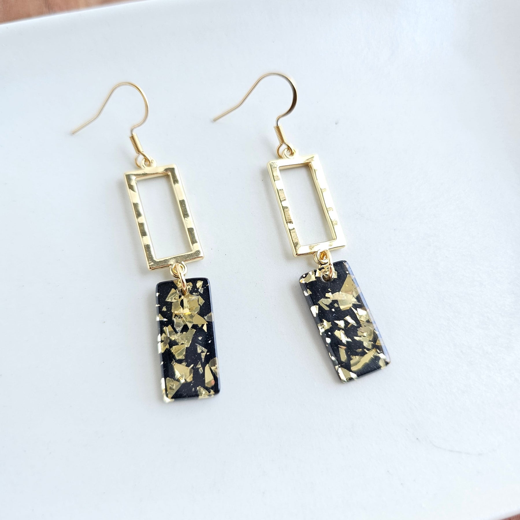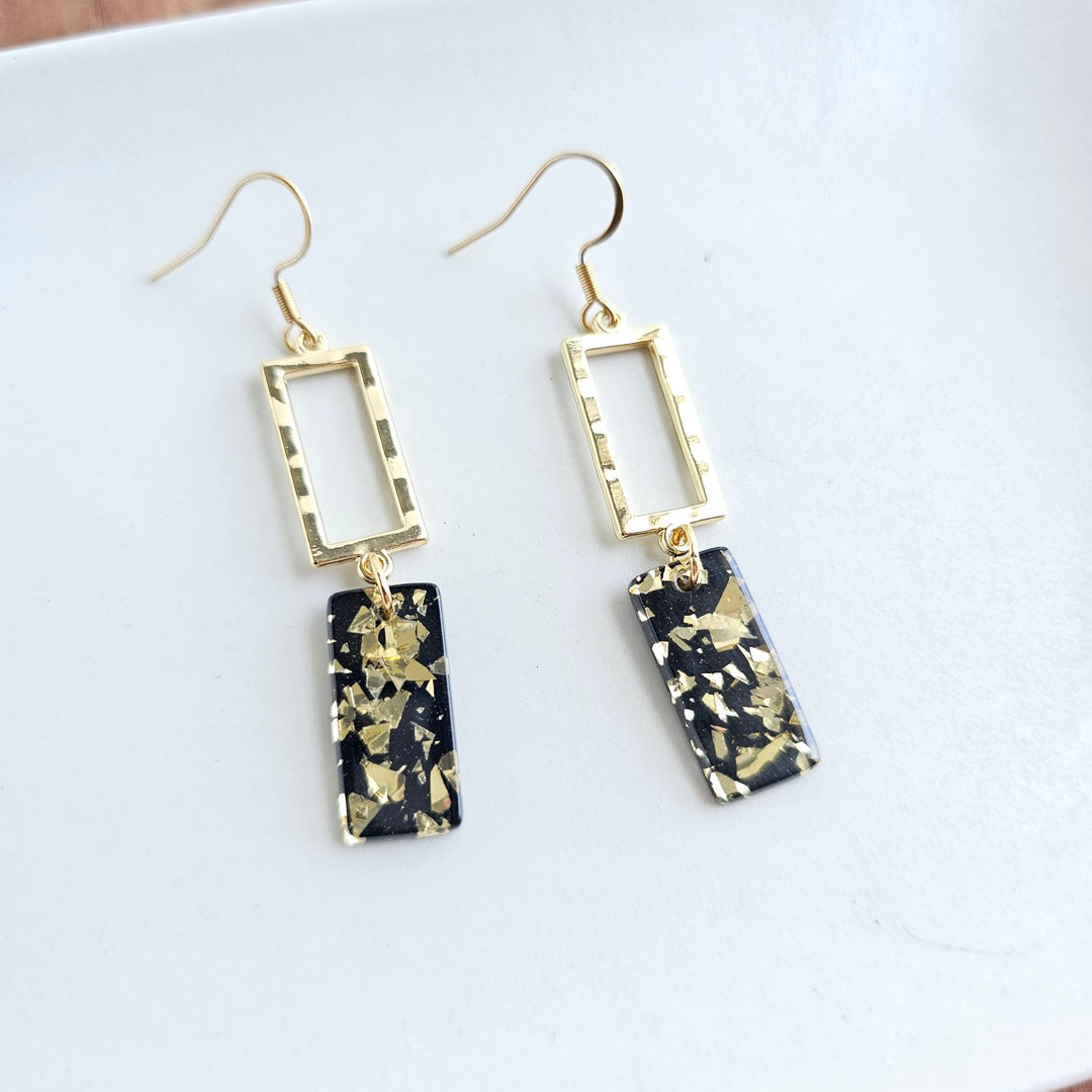 Raya Earrings - Black Gold Flake by Spiffy & Splendid