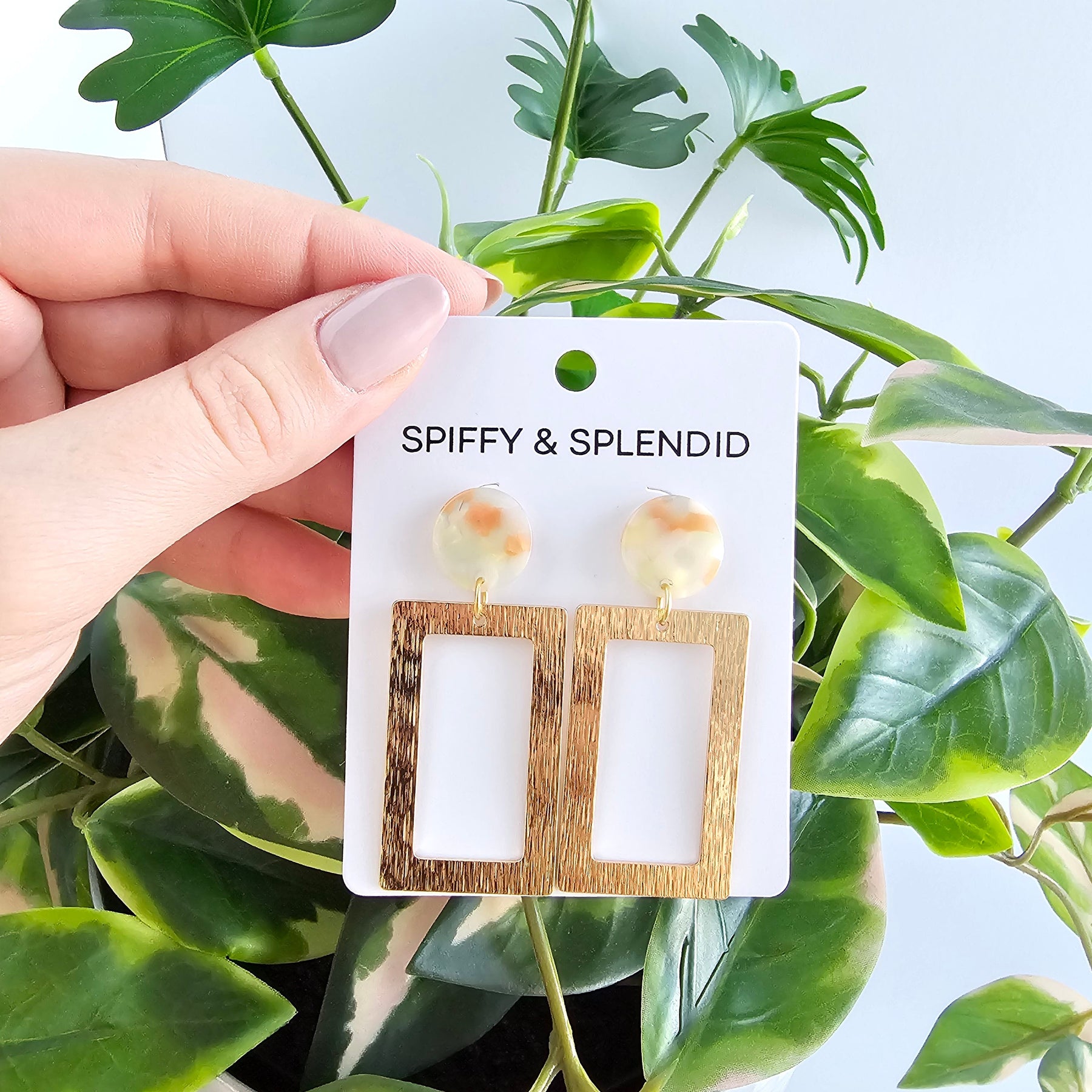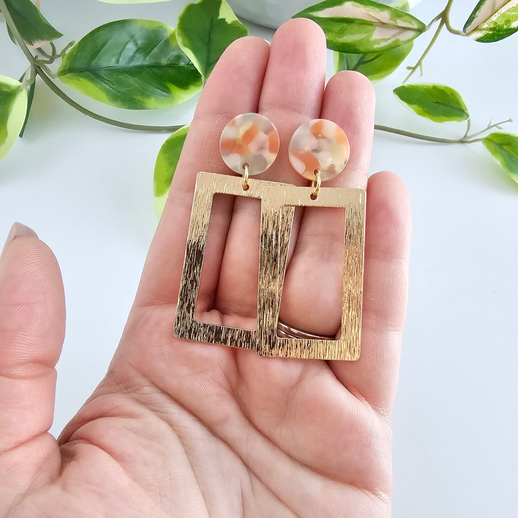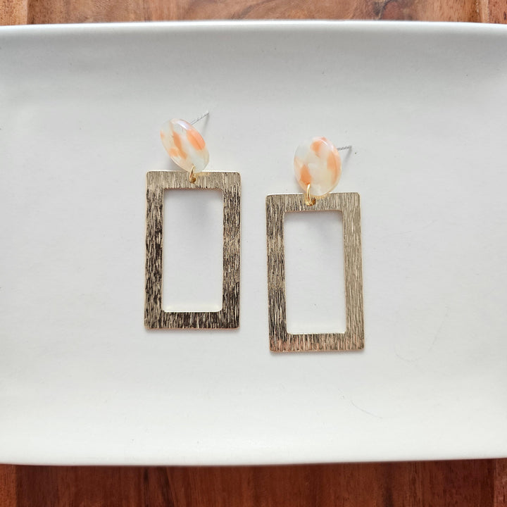 Be the statement maker with our Rebecca Earrings in Orange Dream. These gold rectangle earrings will elevate any look, adding a touch of chic and glamour. You'll be dreaming of these perfect statement earrings!
