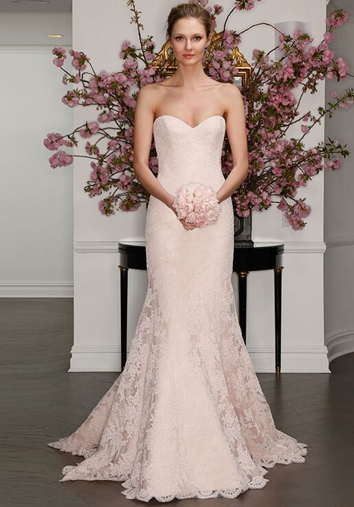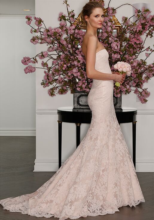 Romona Keveza L7125 is a romantic lace fit and flare gown featuring a strapless sweetheart neckline and an open scoop back! A stunning floral lace pattern covers this beauty from top to hem!