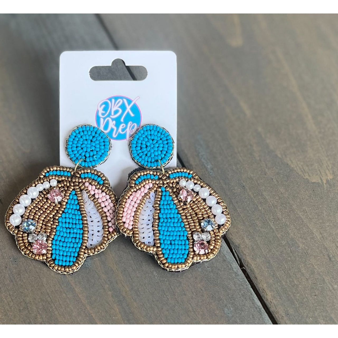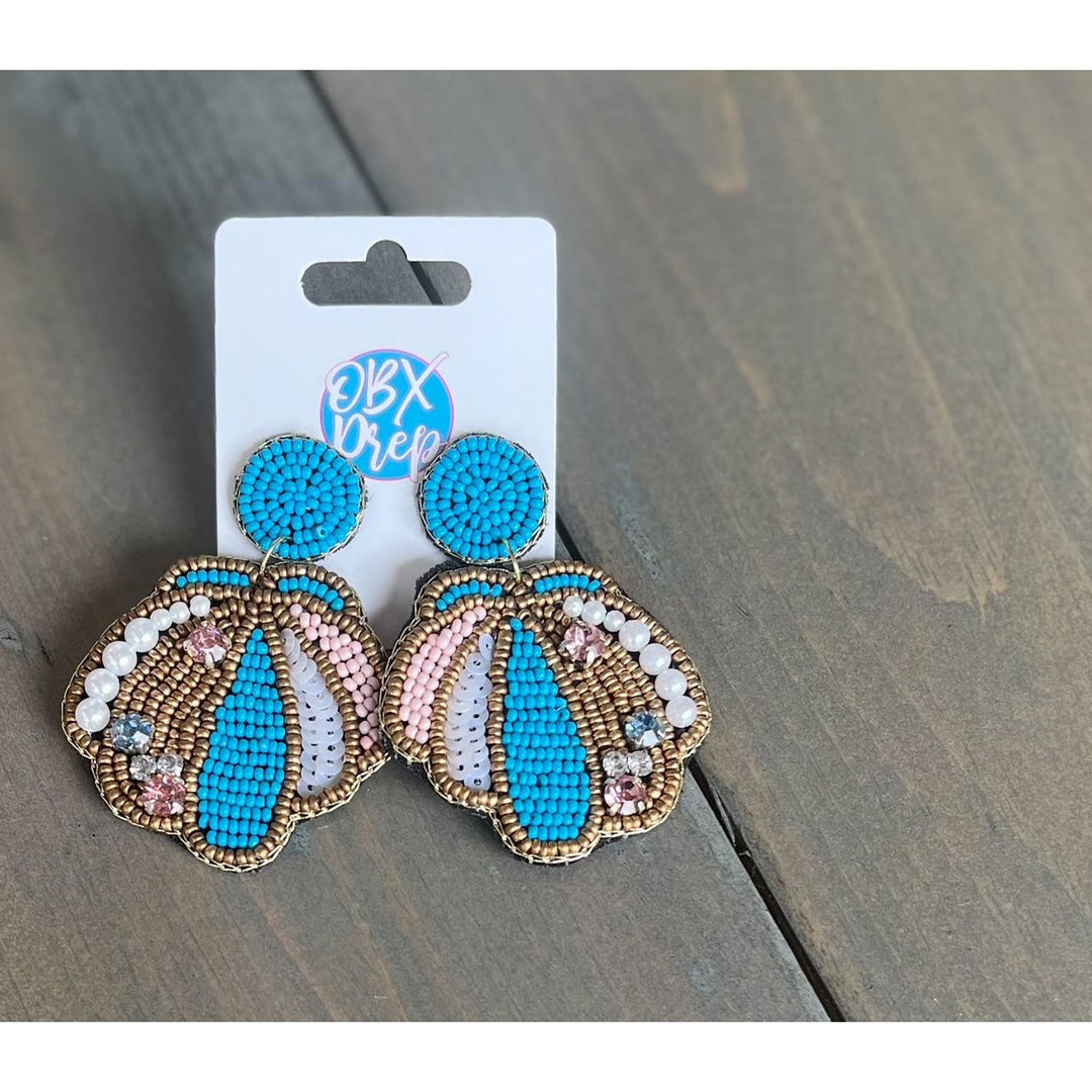 Seascape SeaShell Seed Bead & Pearl Drop Earrings by OBX Prep