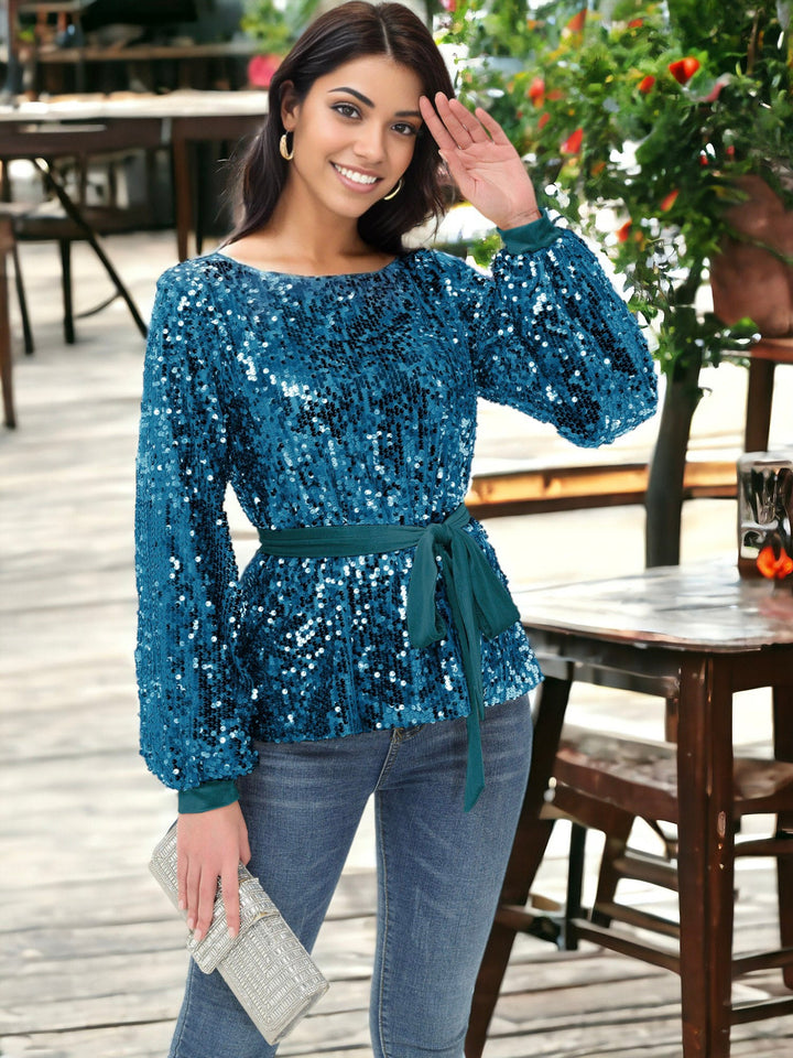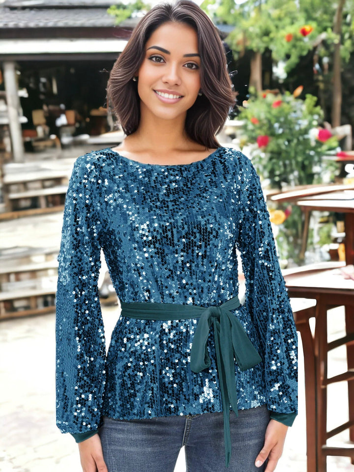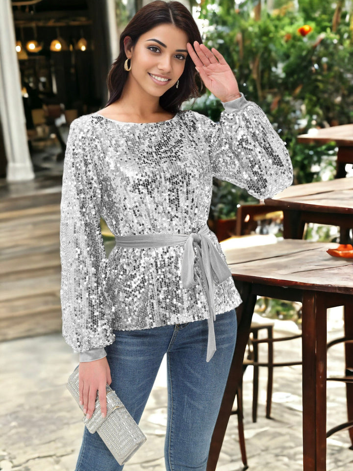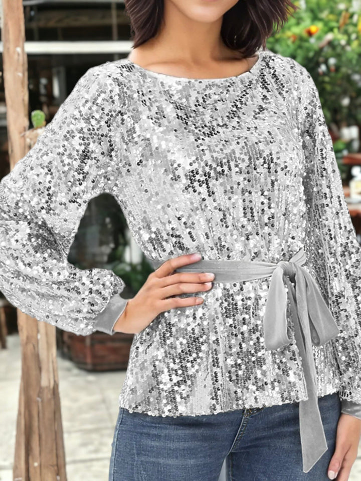 Sequin Party Tie Waist Sweatshirt Pullover Top