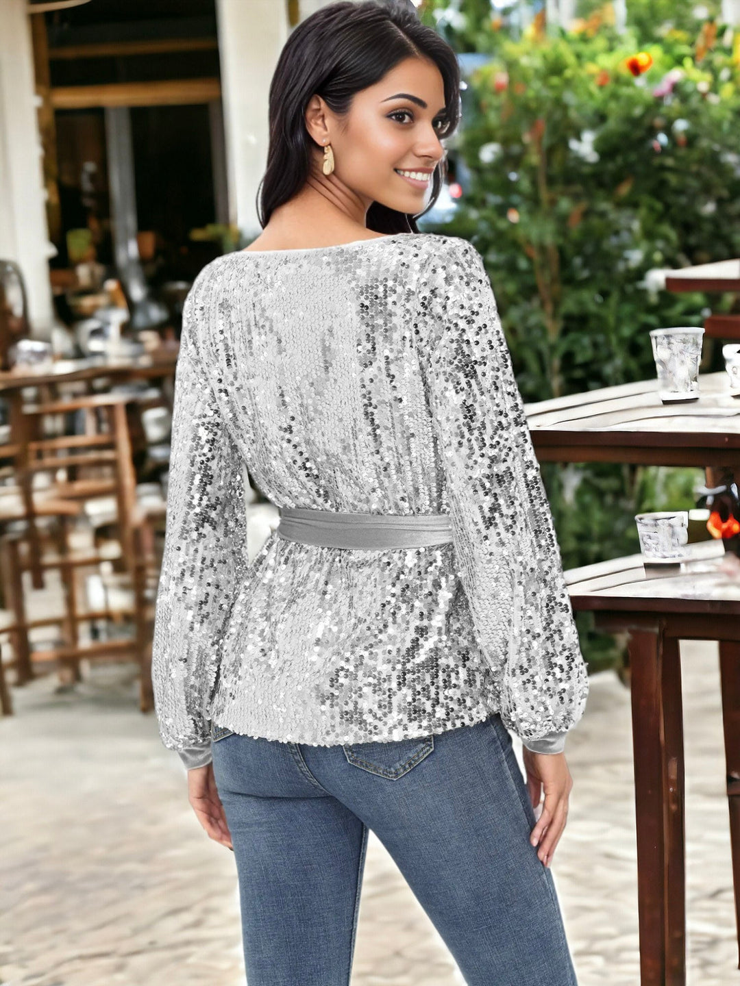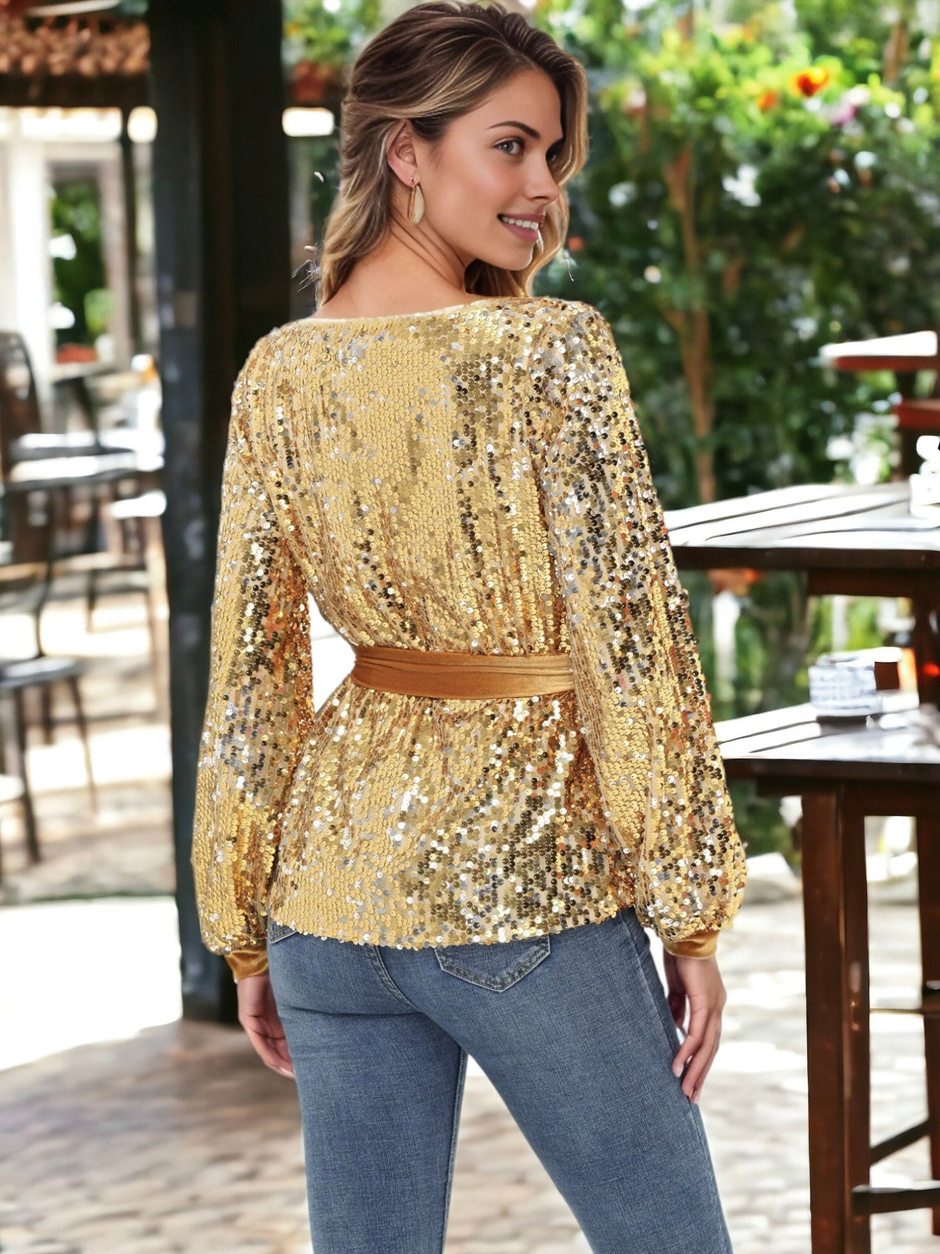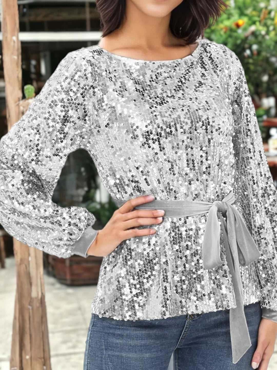 Sequin Party Tie Waist Sweatshirt Pullover Top
