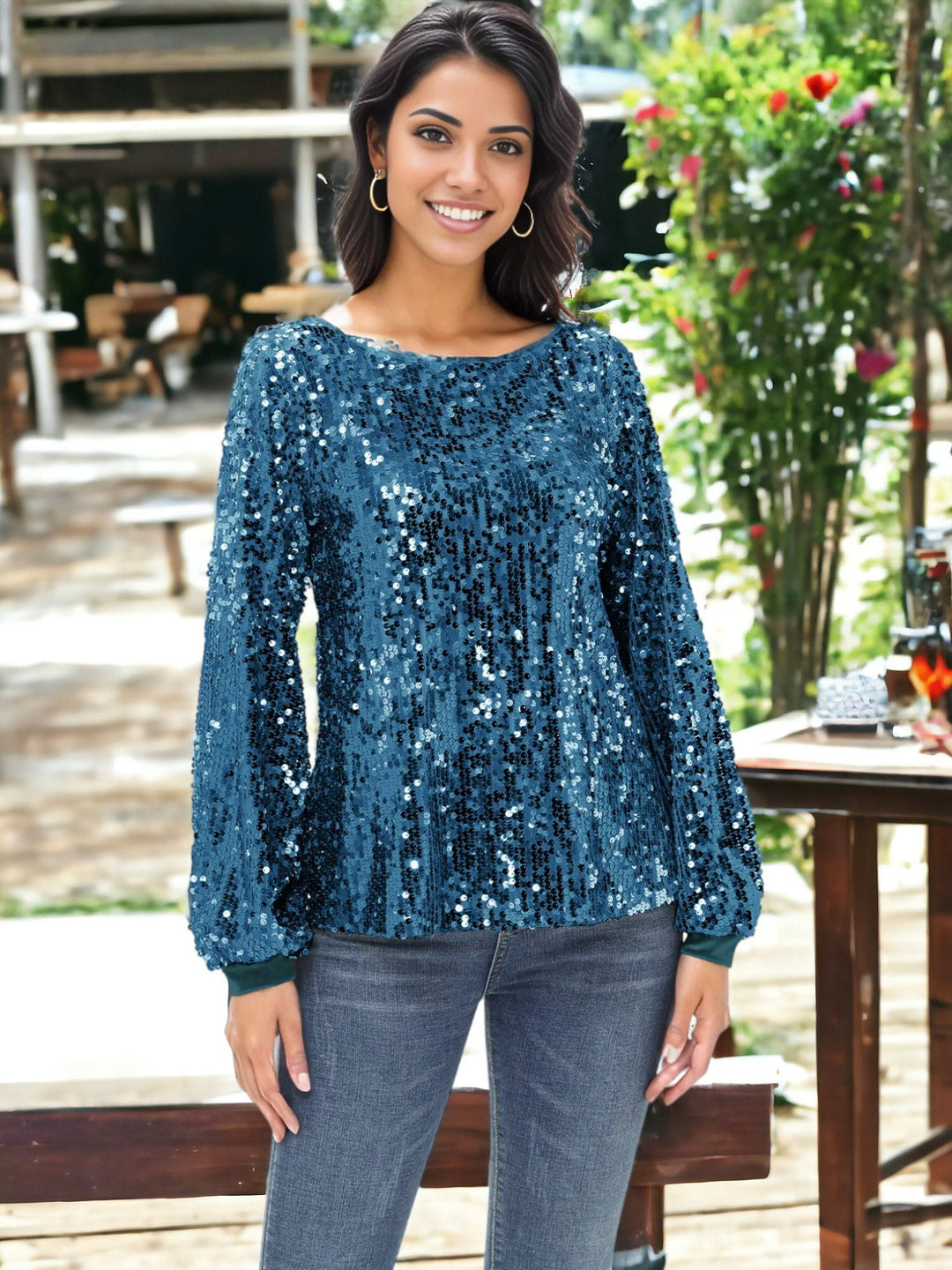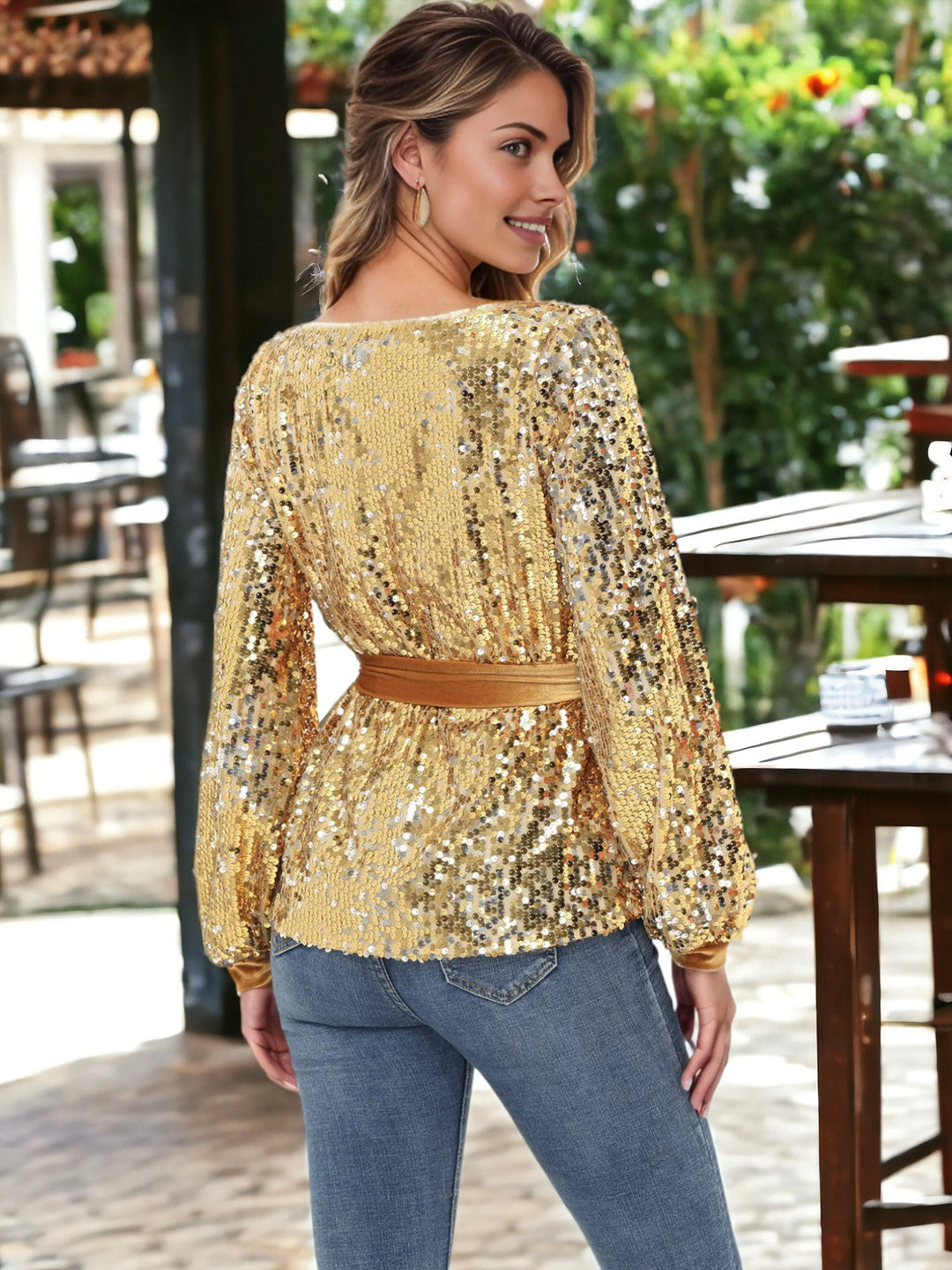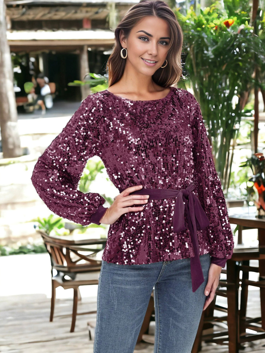 Redefine glamour with our Sequin Party Tie Waist Sweatshirt Pullover Top. The sparkling sequins add a touch of sophistication to this stylish top. Featuring a trendy tie waist, it effortlessly combines comfort and chic. Perfect for parties or casual outings, this top is a versatile addition to your wardrobe. Elevate your style and make a statement with the Sequin Party Tie Waist Sweatshirt Pullover Top.