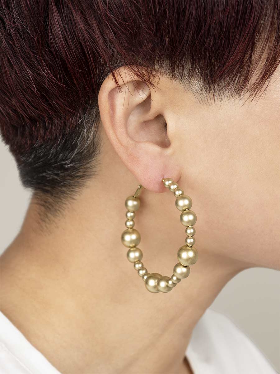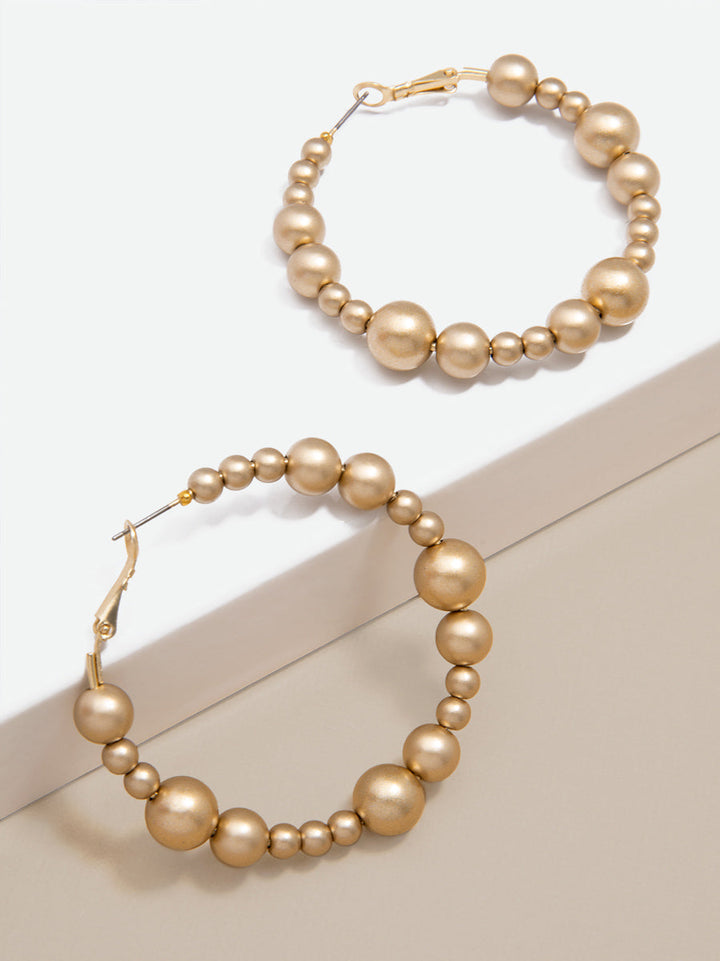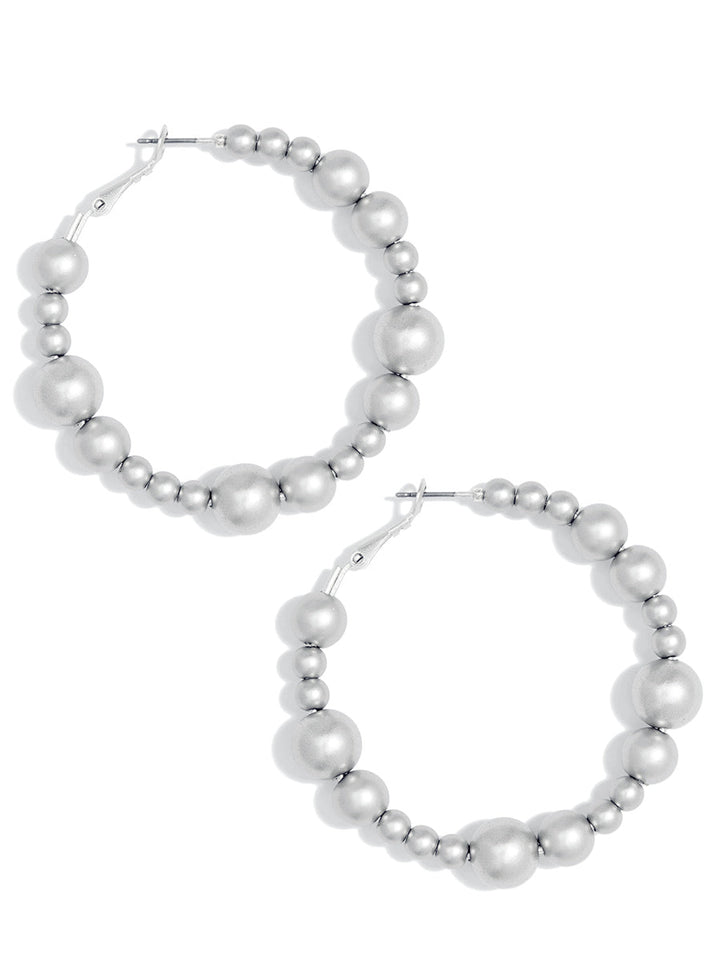 Get your glam on with these eye-catching hoops. Composed of matte, metallic beads in varying sizes, this style is sure to make an entrance.