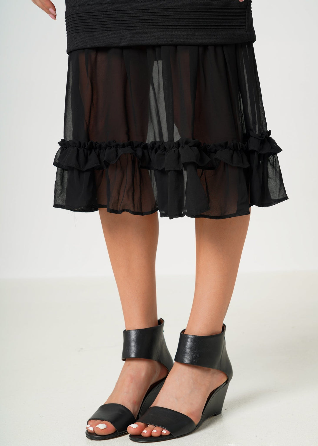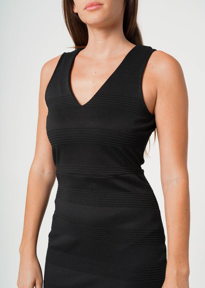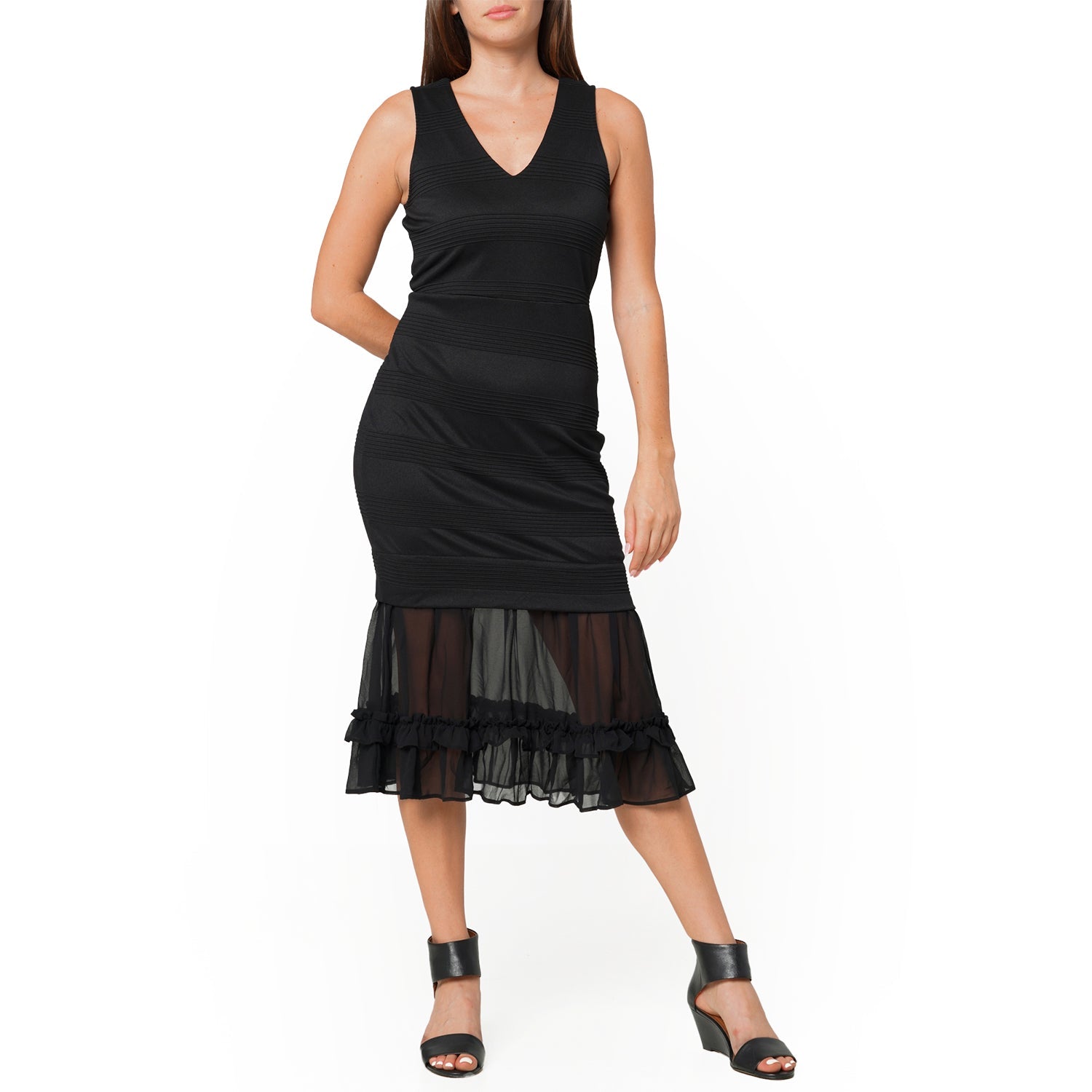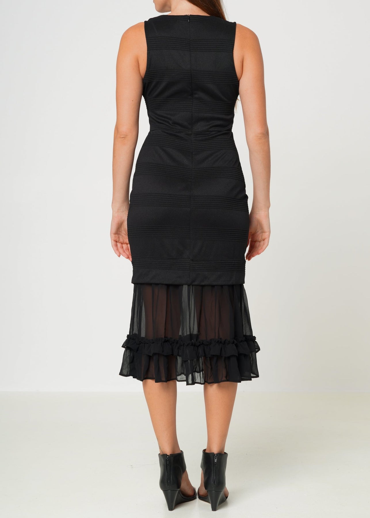 Sleeveless V-neck Sheer Ruffle Hem Bodycon Dress In Black