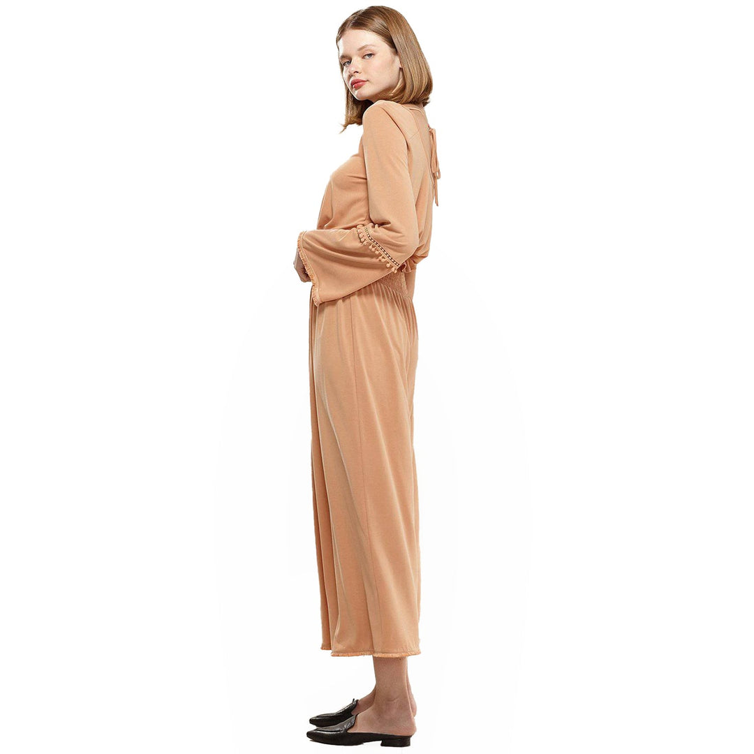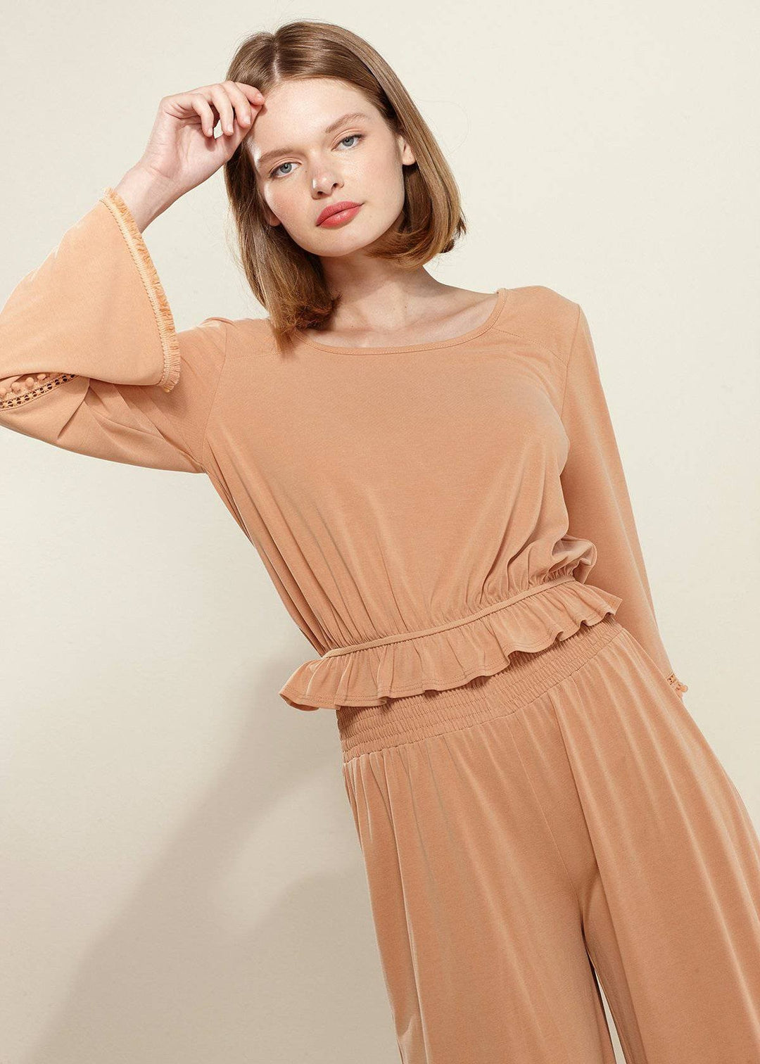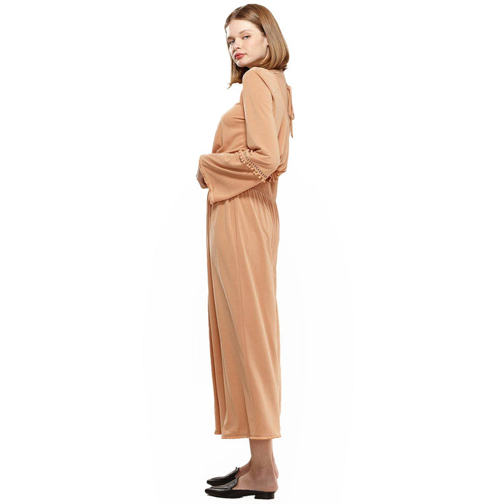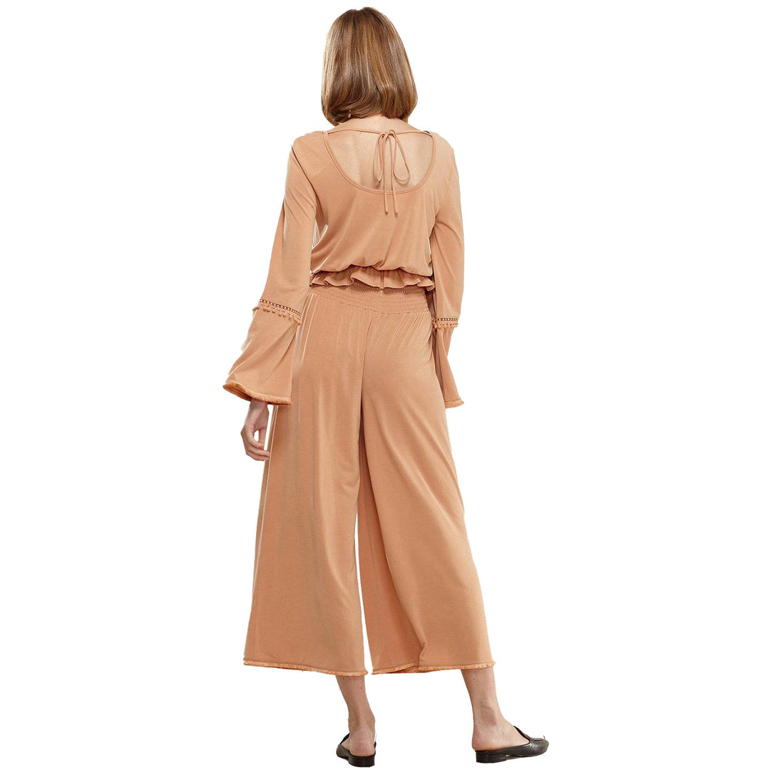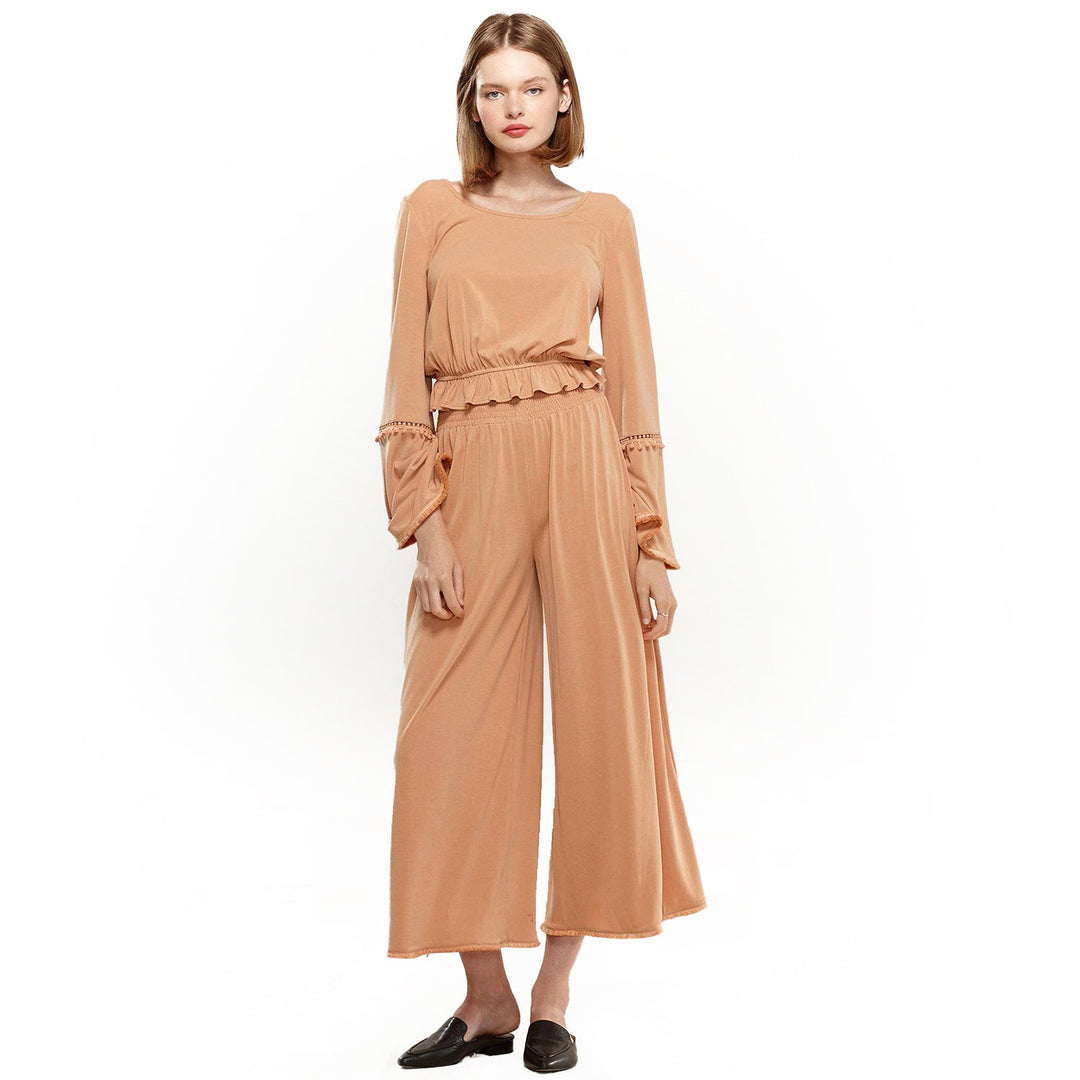 Smocked Waist Wide Leg Palazzo Pants in Apricot by Shop at Konus