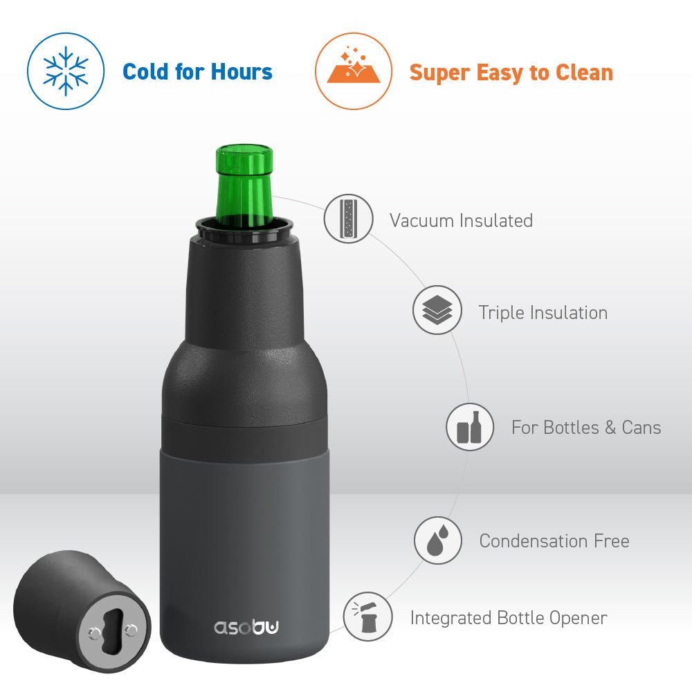 Beer lovers unite! The Asobu Smoke Frosty Beer Cooler keeps your beer chilled for hours — not that it takes you that long to finish. Condensation-free and copper lined, the Frosty Beer Cooler is on a mission to change the way you drink. And the integrated bottle opener takes it to the next level, ensuring you're never scrambling for an opener again. Fits standard sized beer bottles and cans.