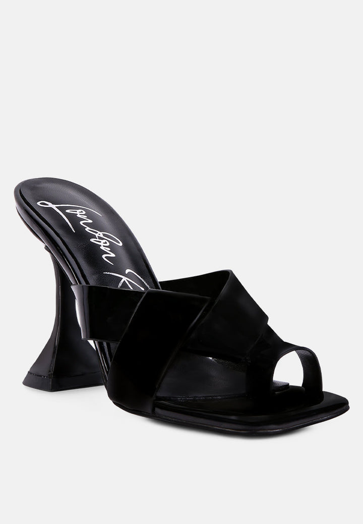 These slip-ons are glossy, shiny, and right on-trend. They feature an intertwined crisscross vamp and a toe ring for added style. The intriguing spool heel is a unique element that sets them apart. Plus, they are easy to wear thanks to the slip-on design and light cushion insole for added comfort.