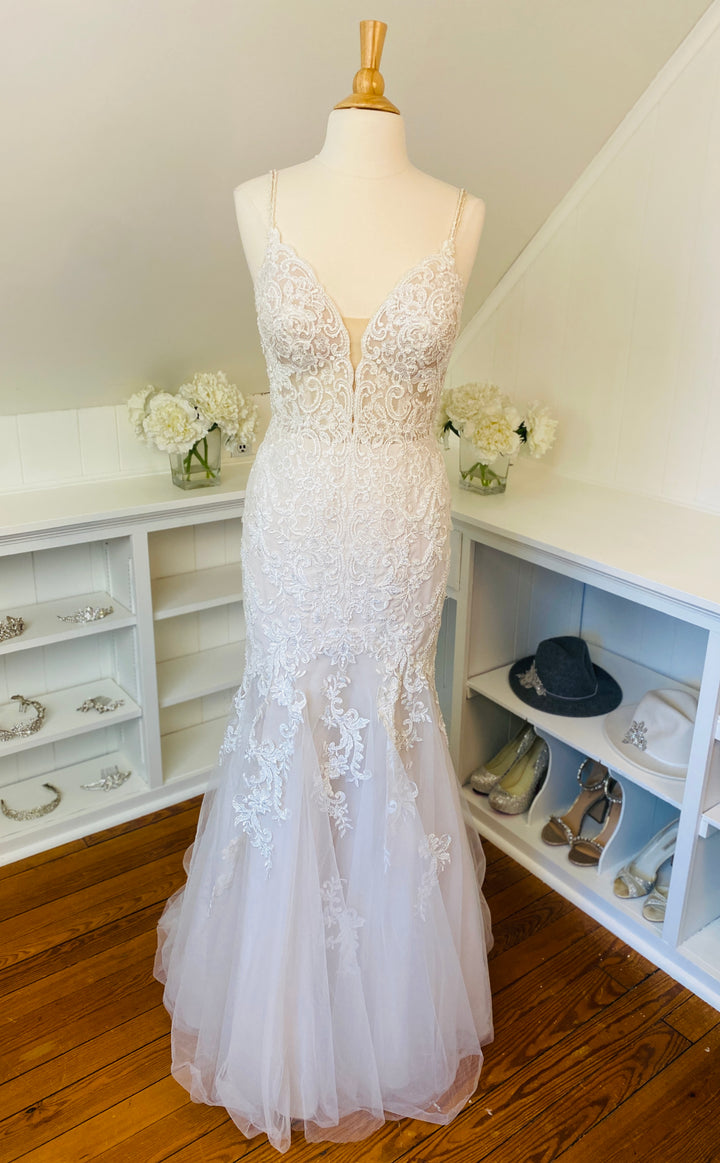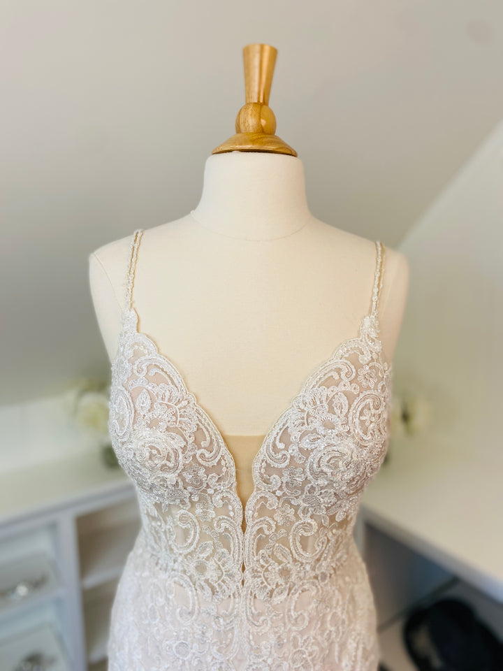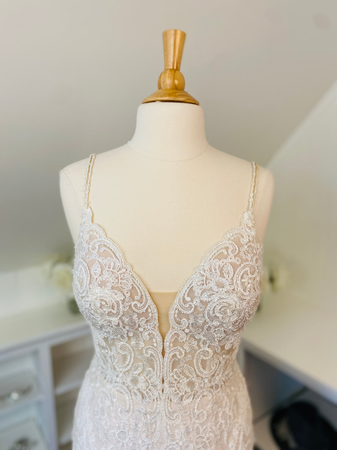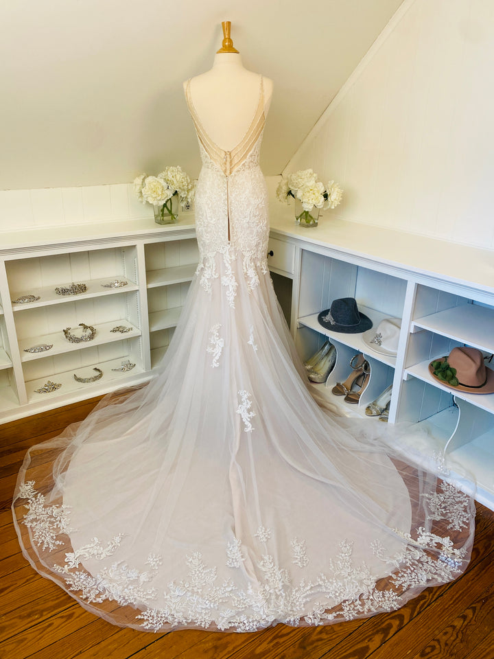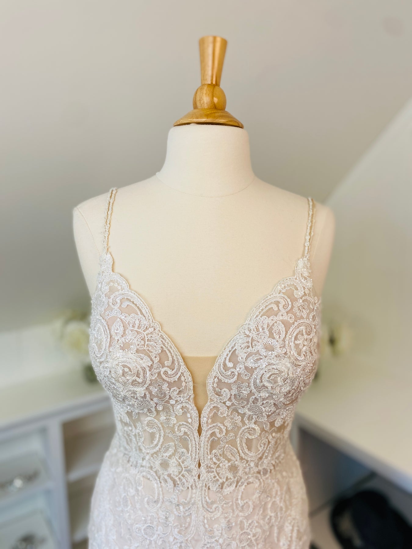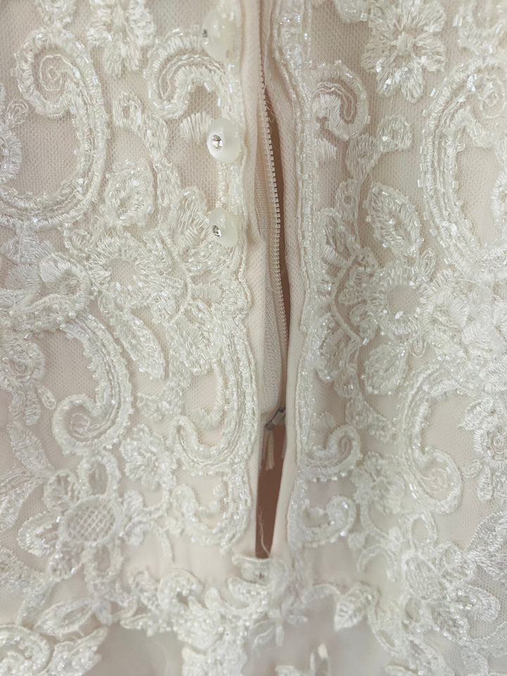 Sale wedding dresses, bridal party dresses and bridal accessories come to us directly from small independent retailers and brands and are mostly discontinued samples.  This merchandise has never been previously purchased or altered, and while most of these goods are in immaculate condition normal wear and tear can occur during previous try on.  Any defects outside of normal wear are disclosed in each listing.