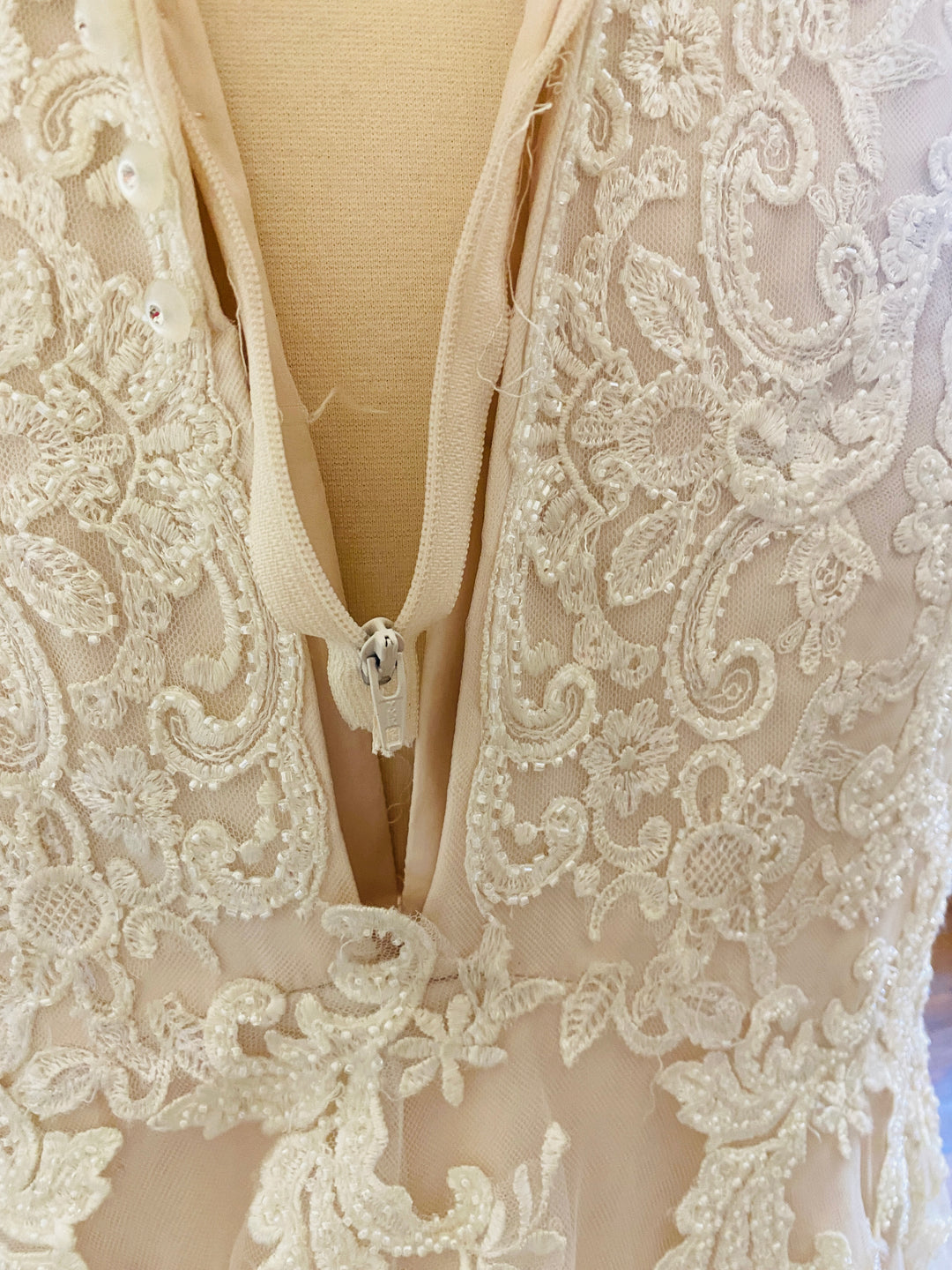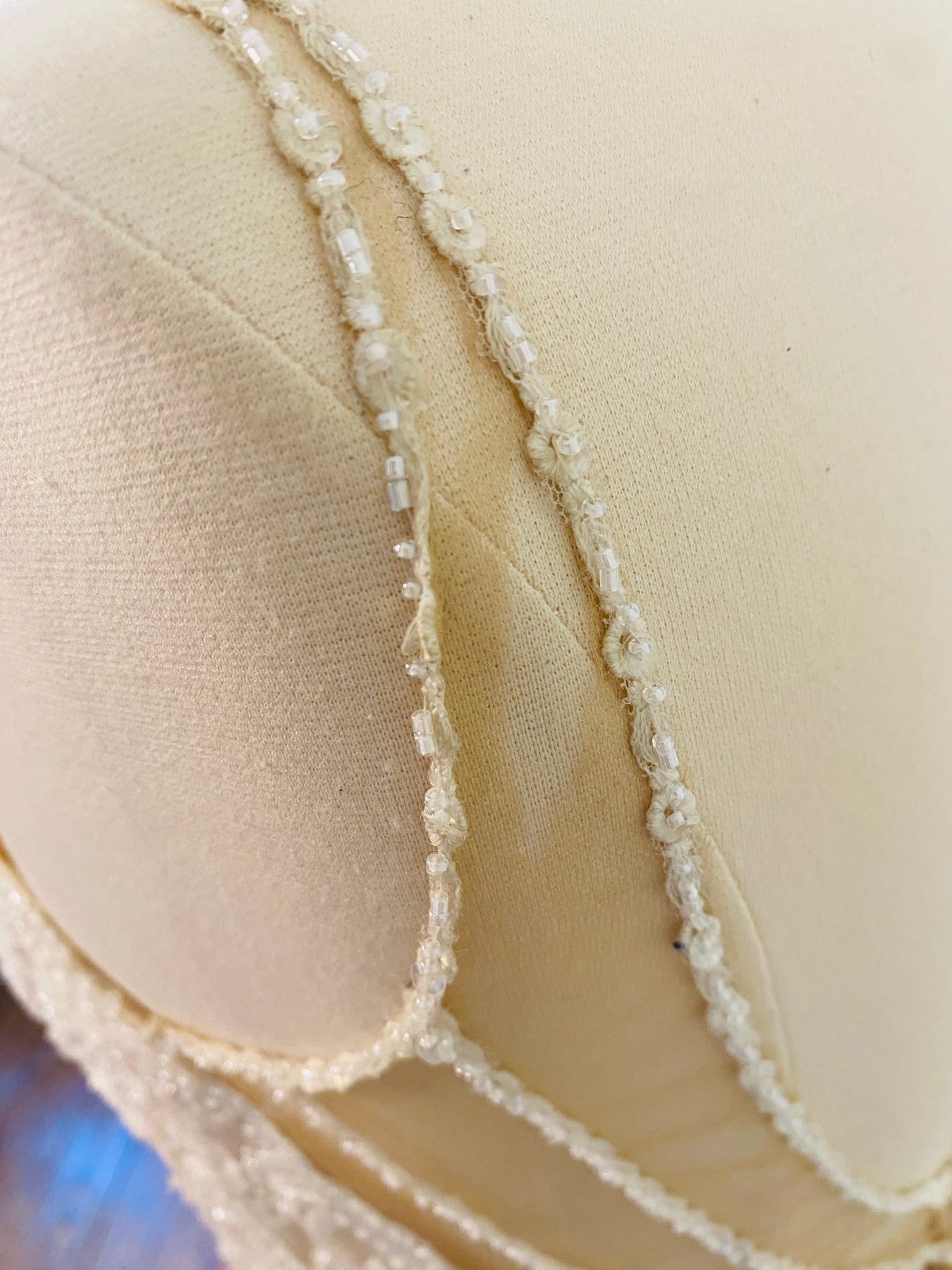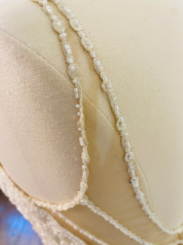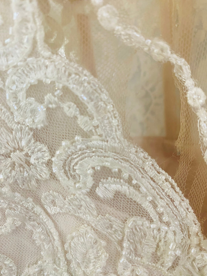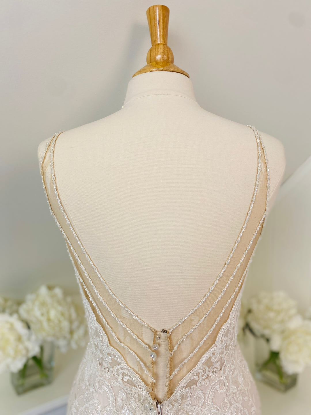 Sale wedding dresses, bridal party dresses and bridal accessories come to us directly from small independent retailers and brands and are mostly discontinued samples.  This merchandise has never been previously purchased or altered, and while most of these goods are in immaculate condition normal wear and tear can occur during previous try on.  Any defects outside of normal wear are disclosed in each listing.