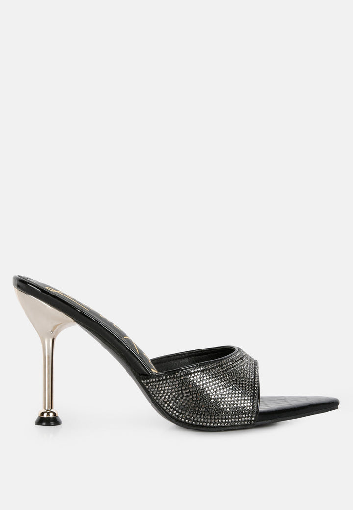 The rhinestone embellishments on these stiletto sandals make them look classy and stunning. The slip-on stiletto heels are perfect as bridal shoes, wedding guest shoes, bridesmaid shoes, and literally every occasion!