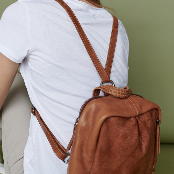 Effortlessly easy, this compact mid-size daypack will be your favorite new companion for all adventures ahead.  Beautifully crafted, hand-woven top handle, two exterior pockets + organized interior.
