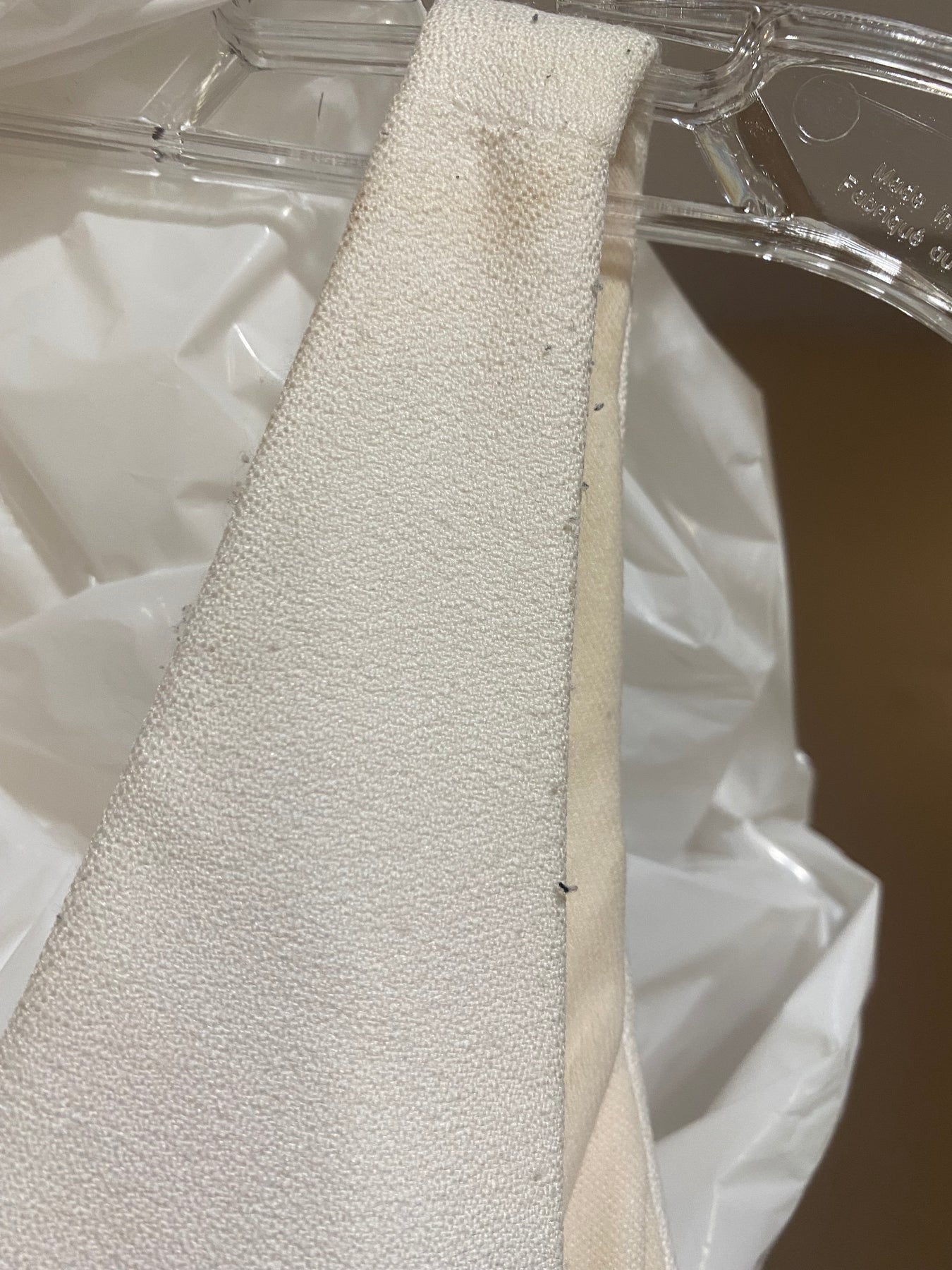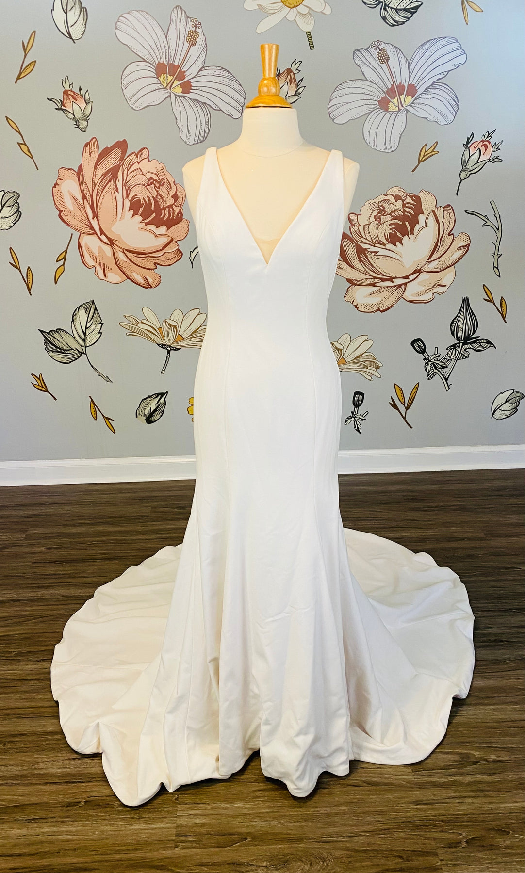 Sale wedding dresses, bridal party dresses and bridal accessories come to us directly from small independent retailers and brands and are mostly discontinued samples.  This merchandise has never been previously purchased or altered, and while most of these goods are in immaculate condition normal wear and tear can occur during previous try on.  Any defects outside of normal wear are disclosed in each listing.