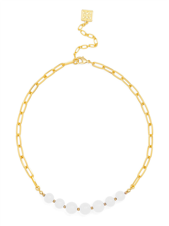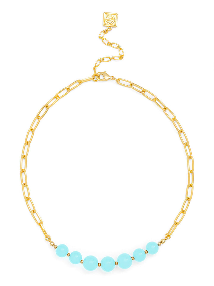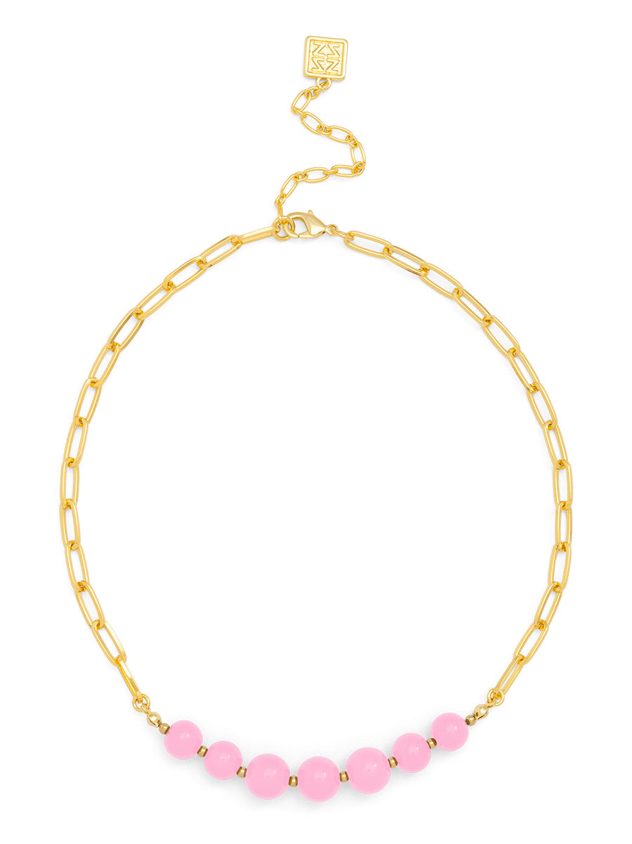 Sophisticated yet simple, Sydney gives a boost to your neckline. The chain link is adorned with glass beads to complete your day or night look.