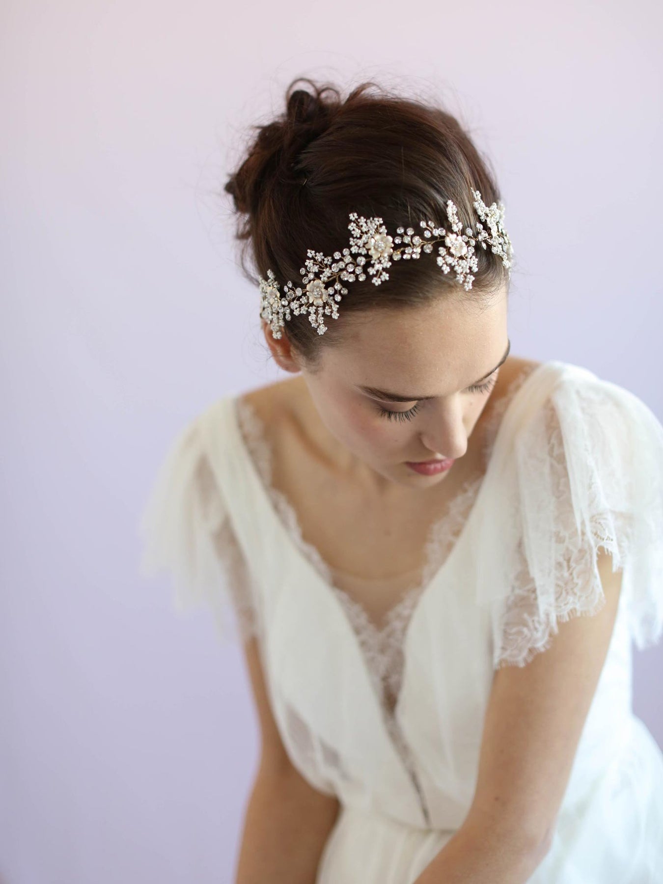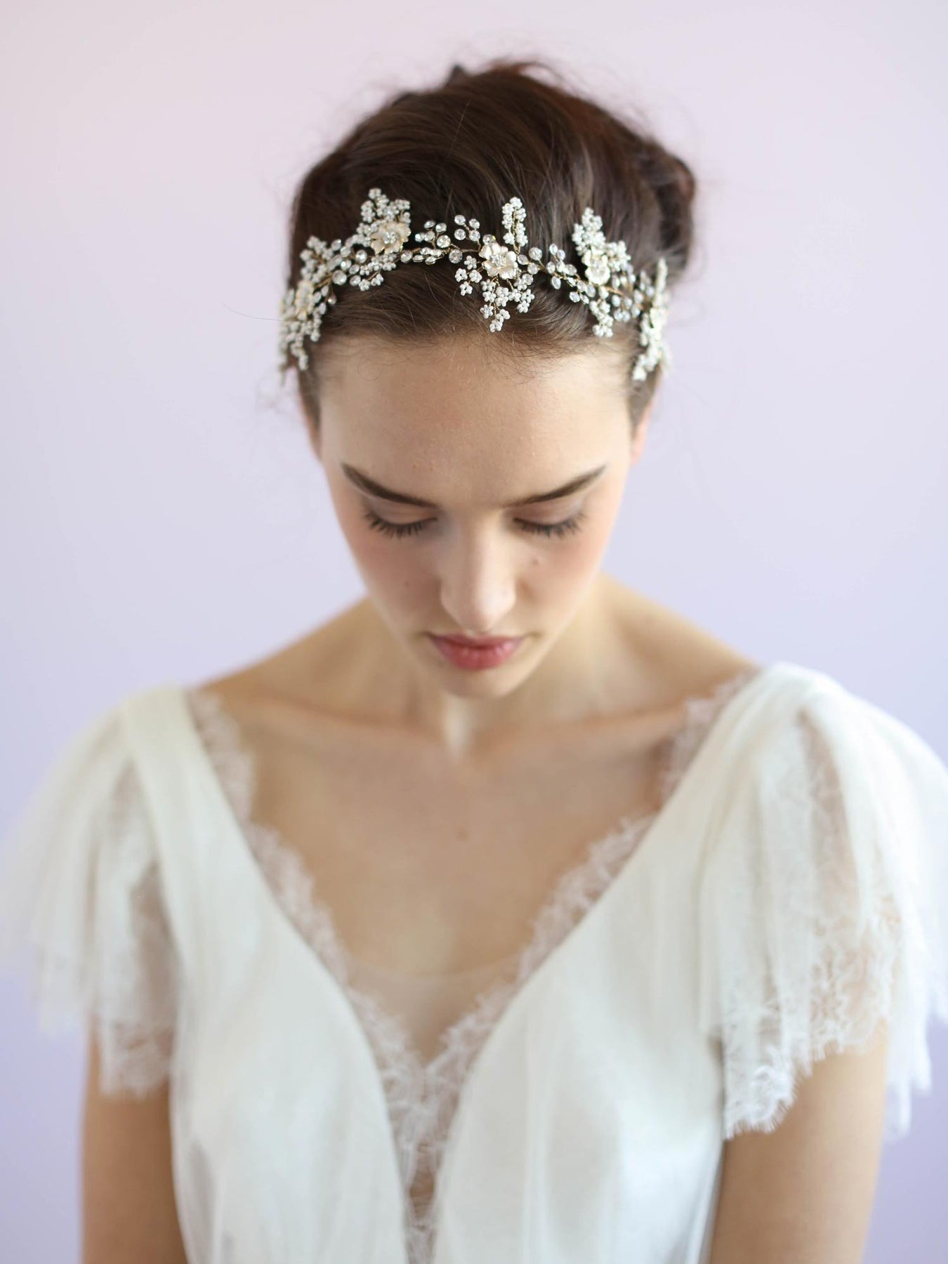Twigs and Honey Lush Beaded Blossom and Crystal Hair Vine