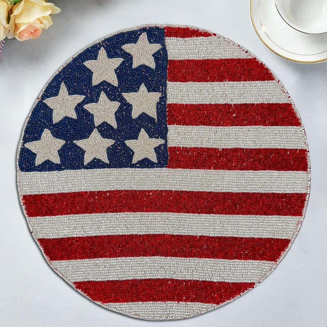 This Handmade Round Beaded Placemat is sure to bring patriotic visual effect to your tables. They are multi-utility which may add grace to your home decor and protect your table top from scratches for a joyful 4th of July supper.