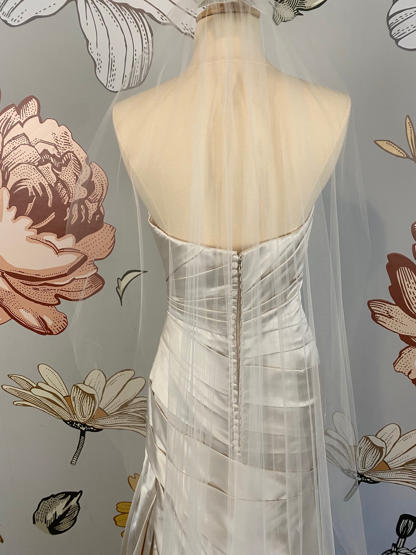 Sale wedding dresses, bridal party dresses and bridal accessories come to us directly from small independent retailers and brands and are mostly discontinued samples.  This merchandise has never been previously purchased or altered, and while most of these goods are in immaculate condition normal wear and tear can occur during previous try on.  Any defects outside of normal wear are disclosed in each listing.