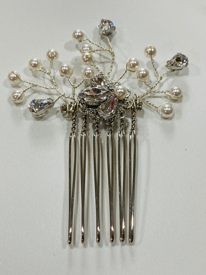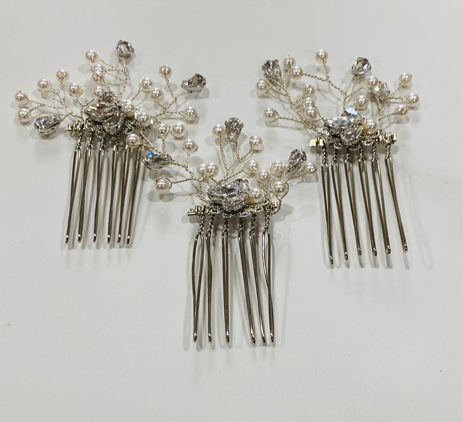 These custom miniature combs come in a set of three.  These striking combs offer the perfect amount of bling that's balanced with pearl accents.