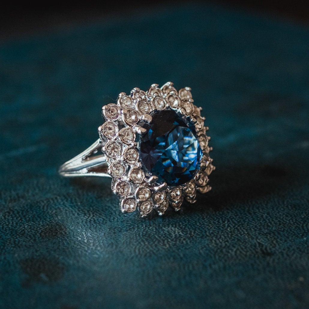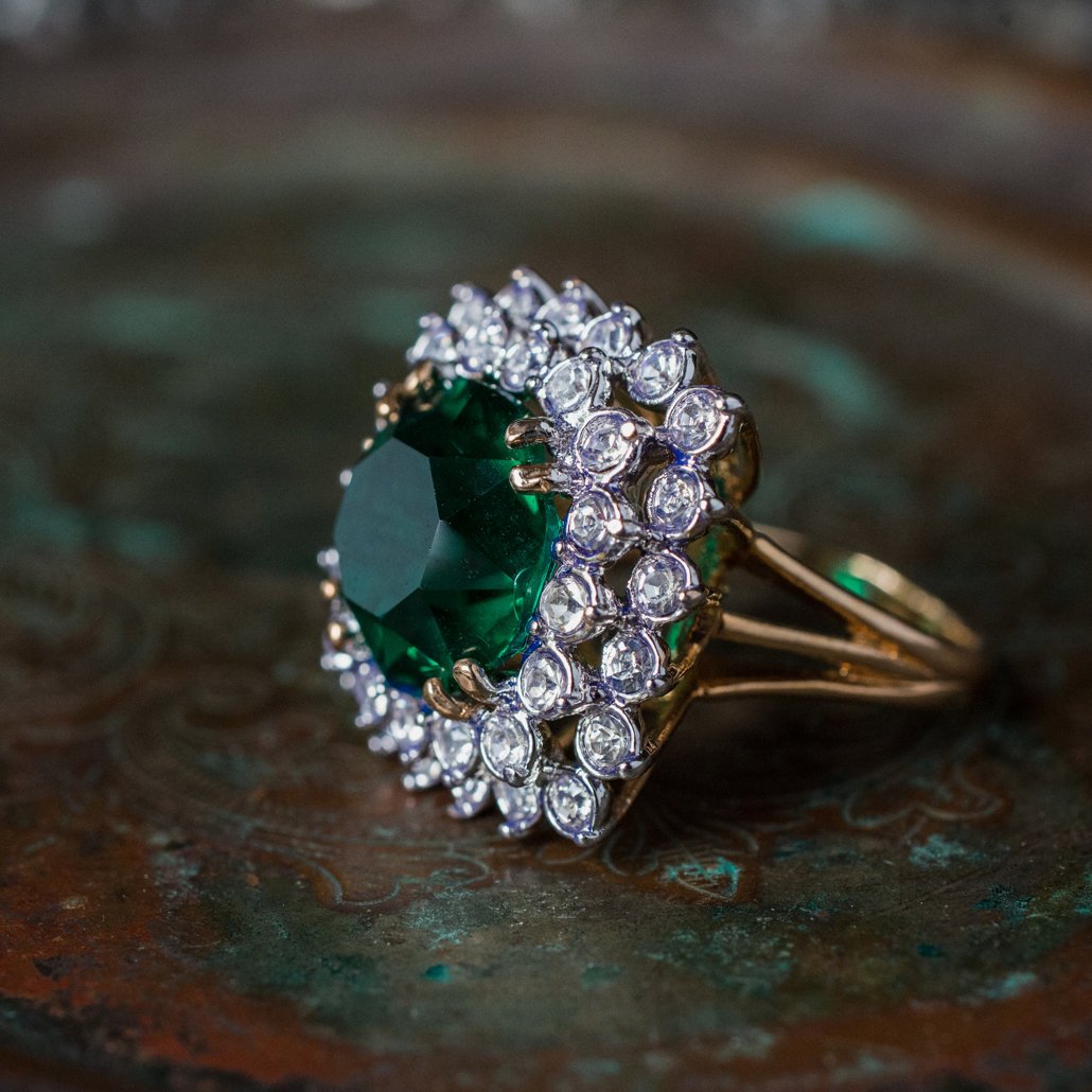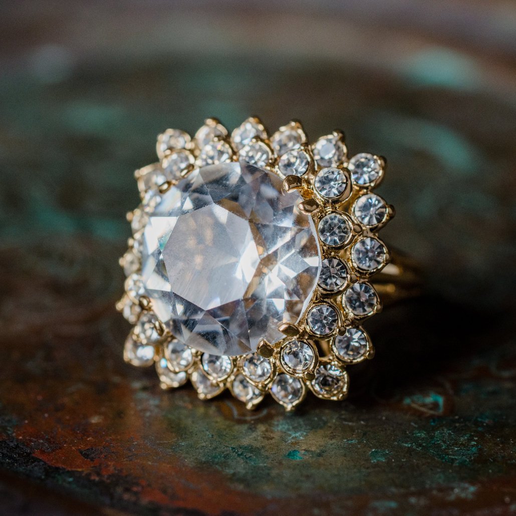 Vintage Austrian Crystal Women's Statement Cocktail Ring 18k Yellow Gold Electroplated Made in the USA by PVD Vintage Jewelry