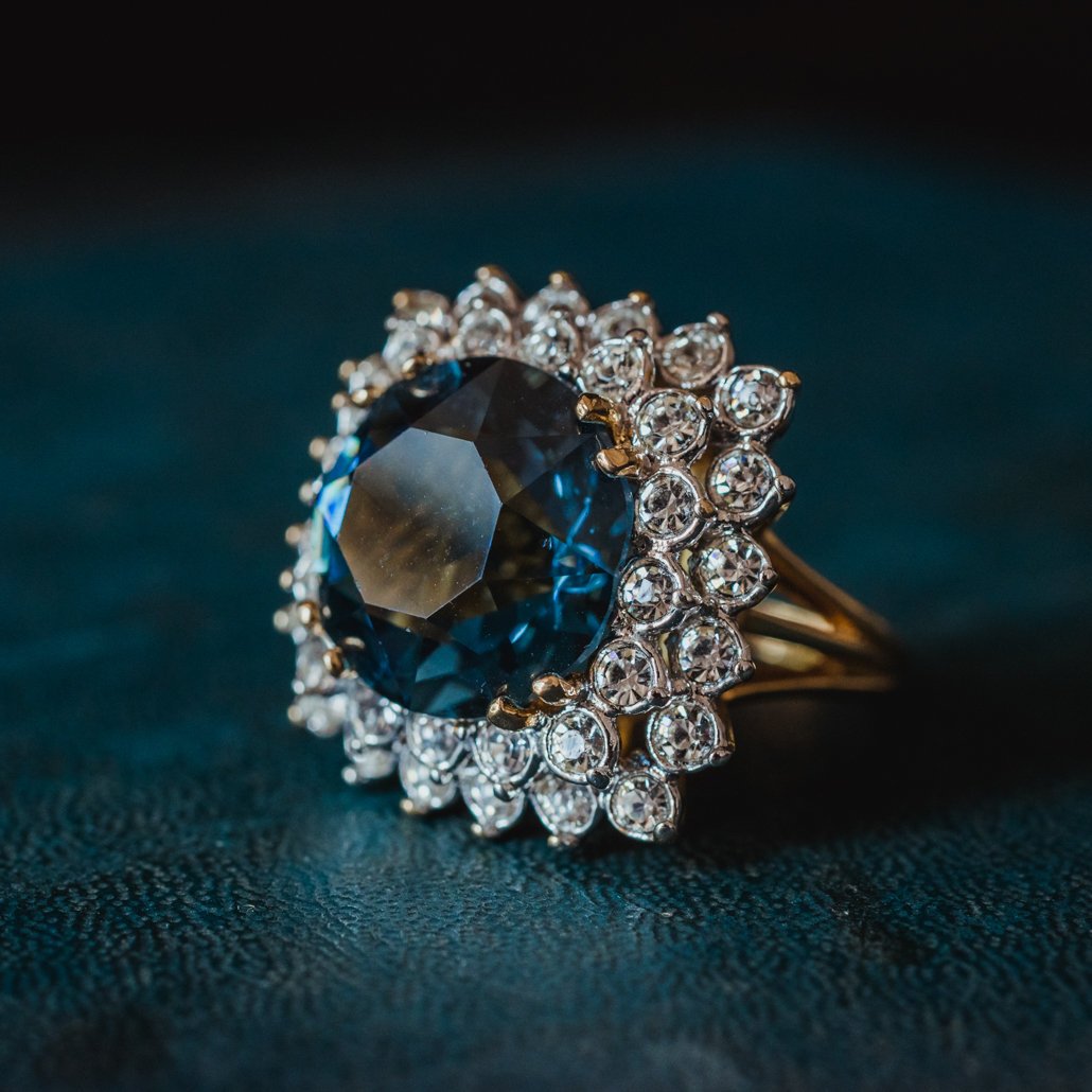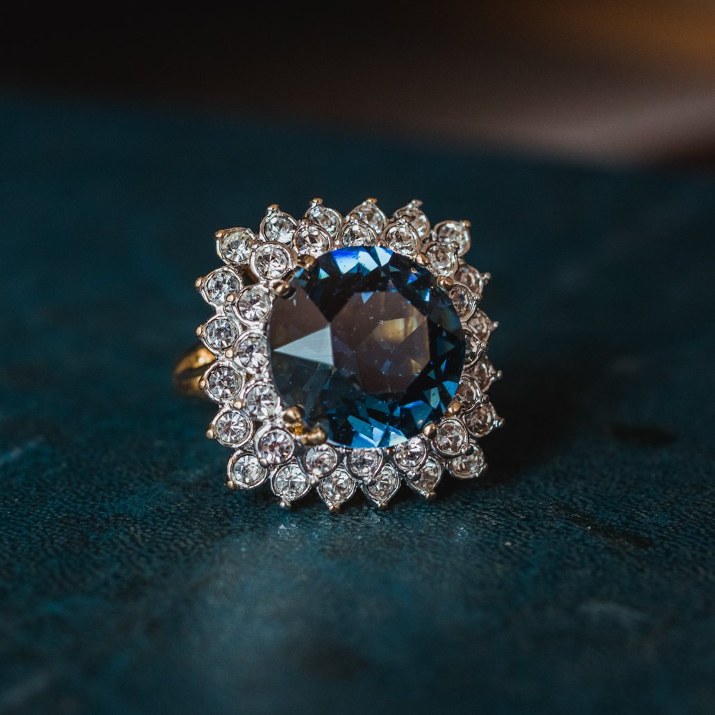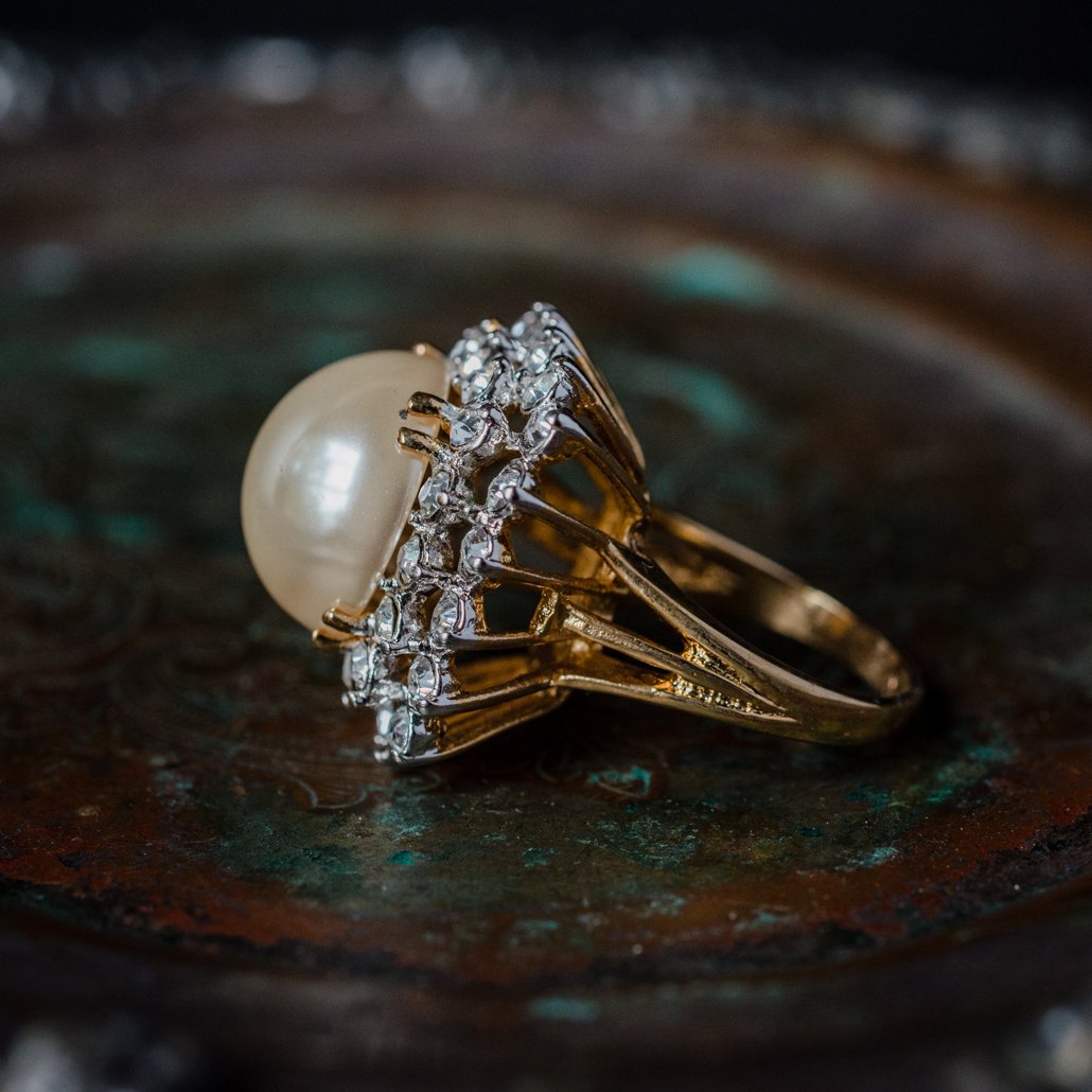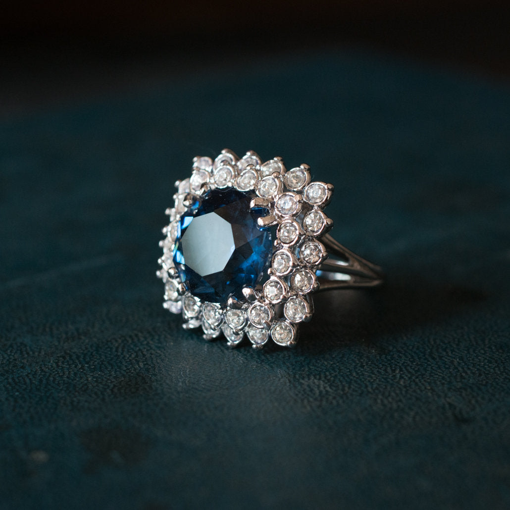 Vintage Austrian Crystal Women's Statement Cocktail Ring 18k Yellow Gold Electroplated Made in the USA by PVD Vintage Jewelry