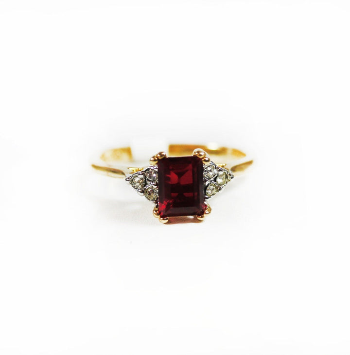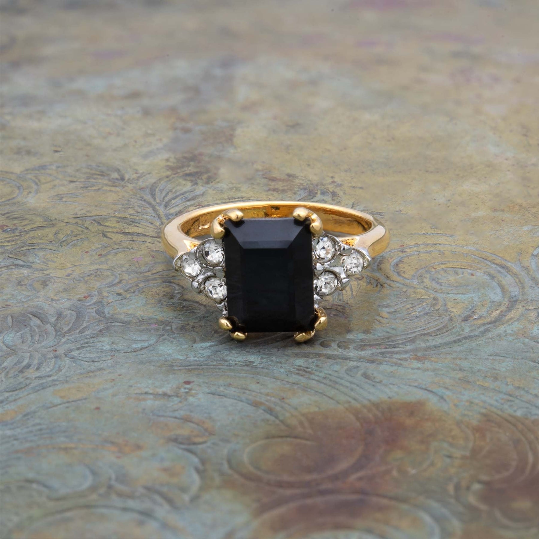 Vintage Ring Clear Austrian Crystals 18k Yellow Gold Electroplated Womens Birthstone Made in USA by PVD Vintage Jewelry