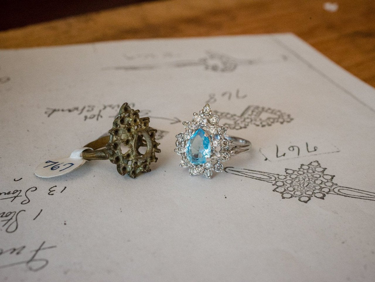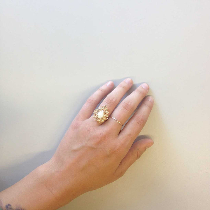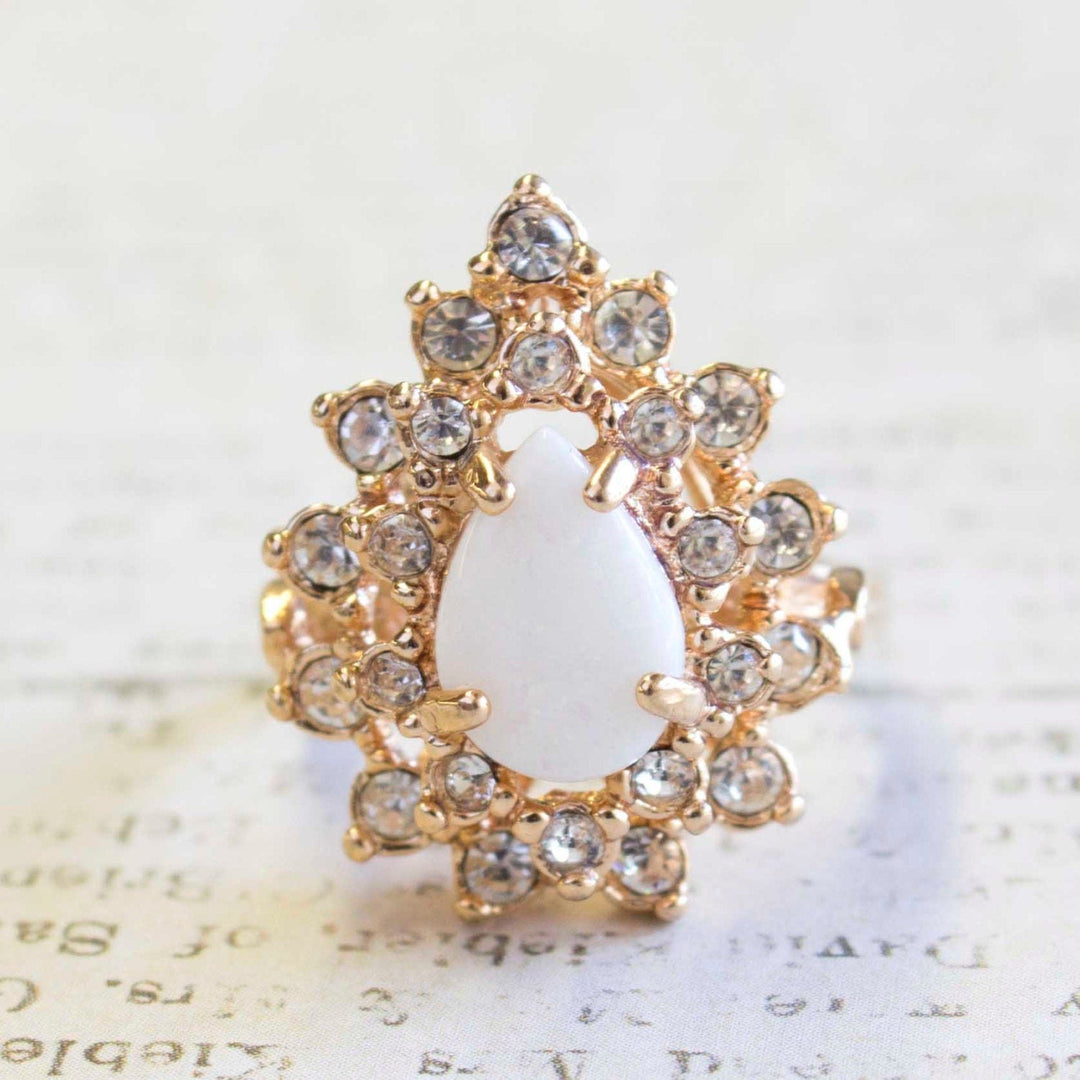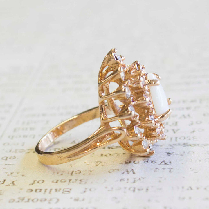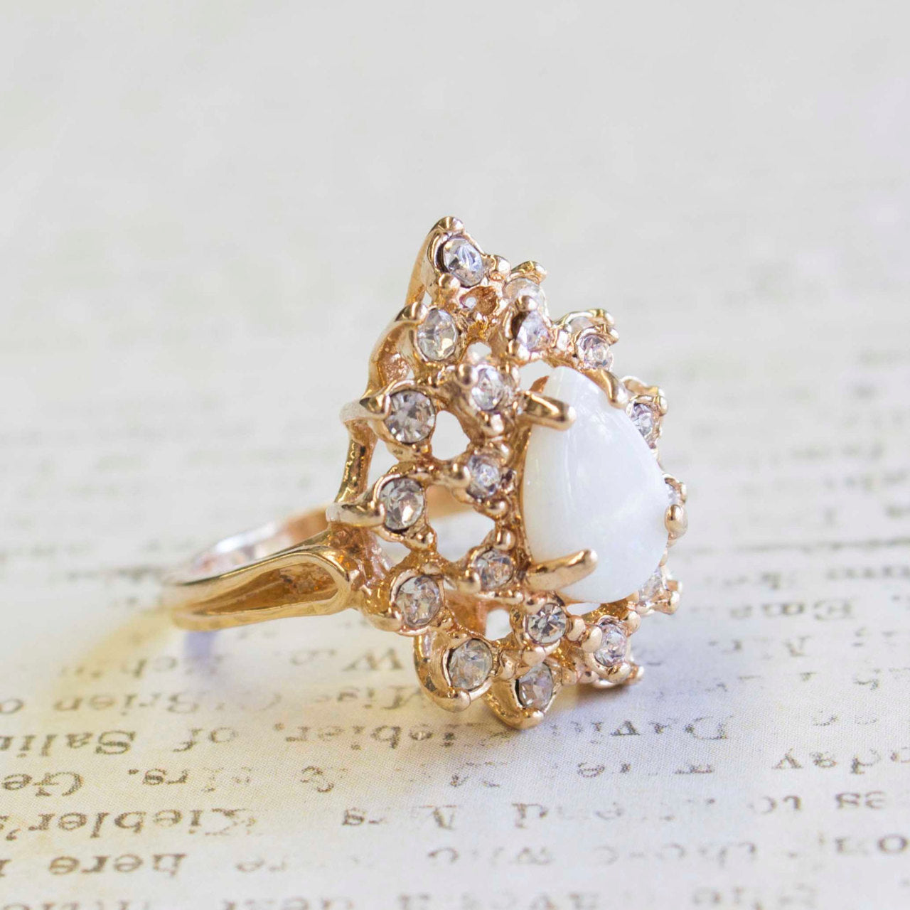 Vintage Ring Victorian Style Genuine Opal Clear Swarovski Crystals 18k Gold Womens Ornate Antique Jewelry #R767 by PVD Vintage Jewelry