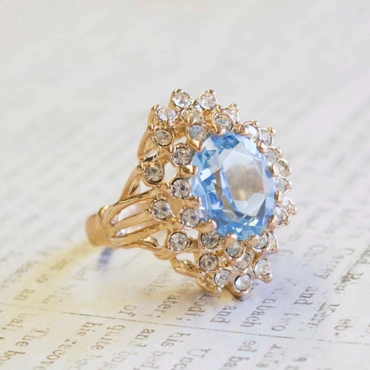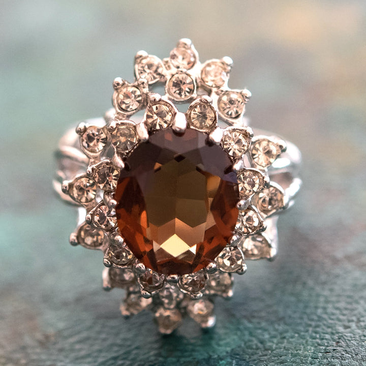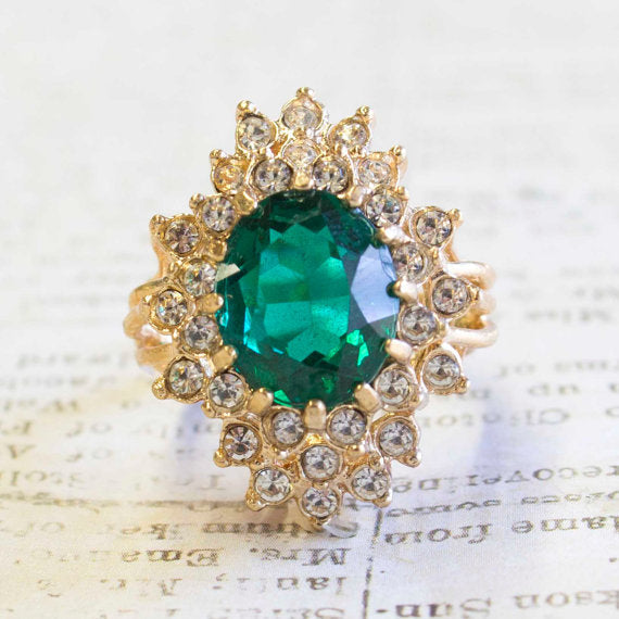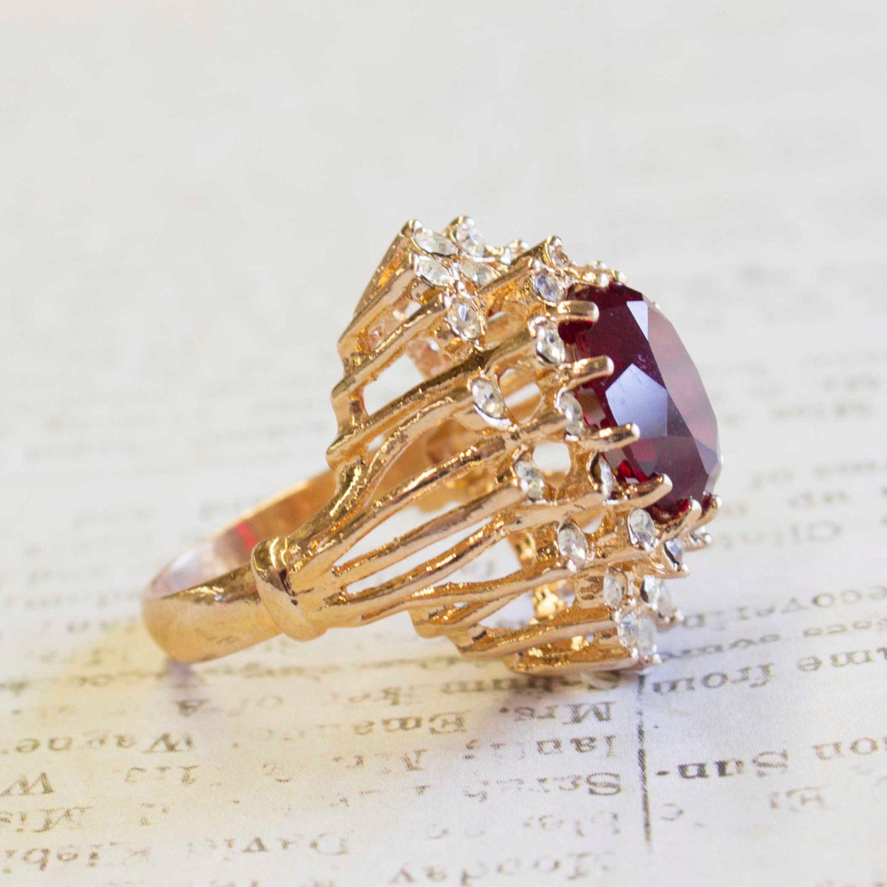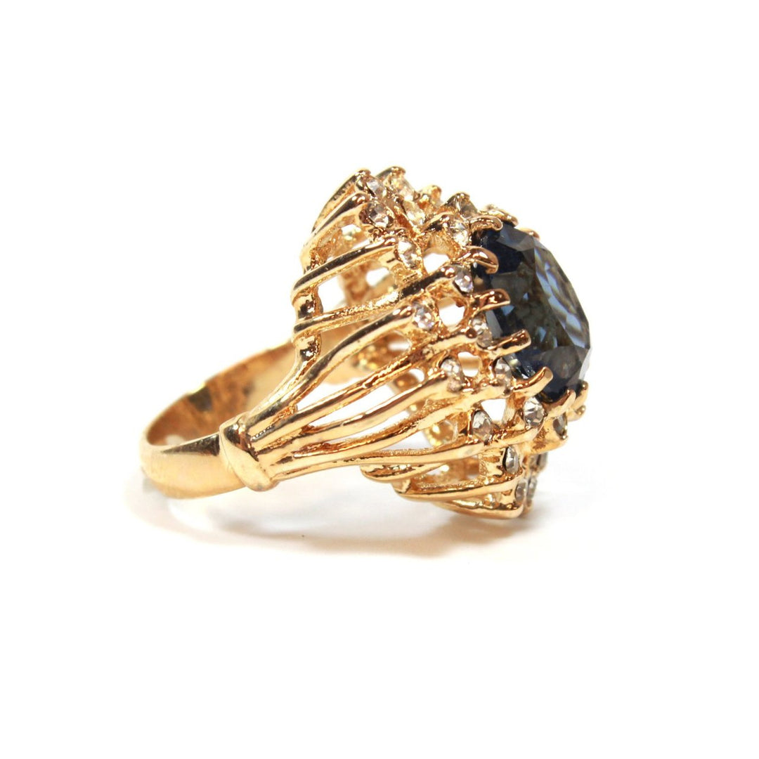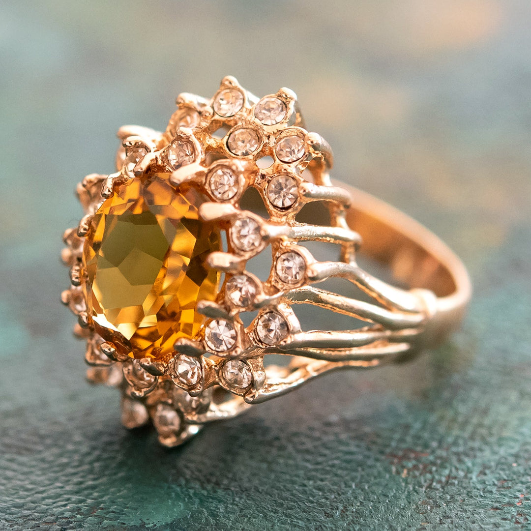 Vintage Women's Austrian Crystal Cocktail Ring 18k Gold Electroplated Birthstone Ring for Women by PVD Vintage Jewelry