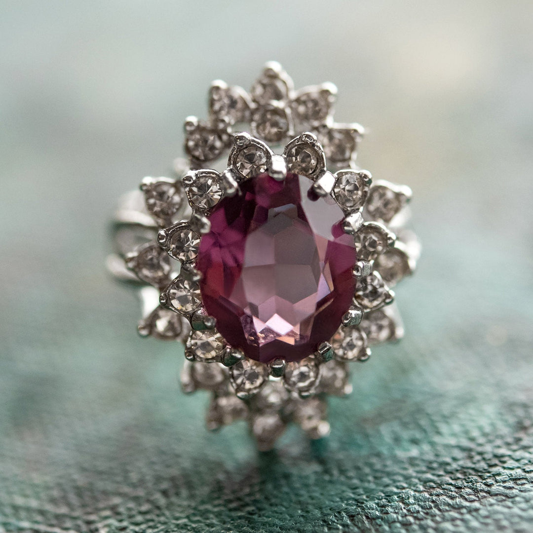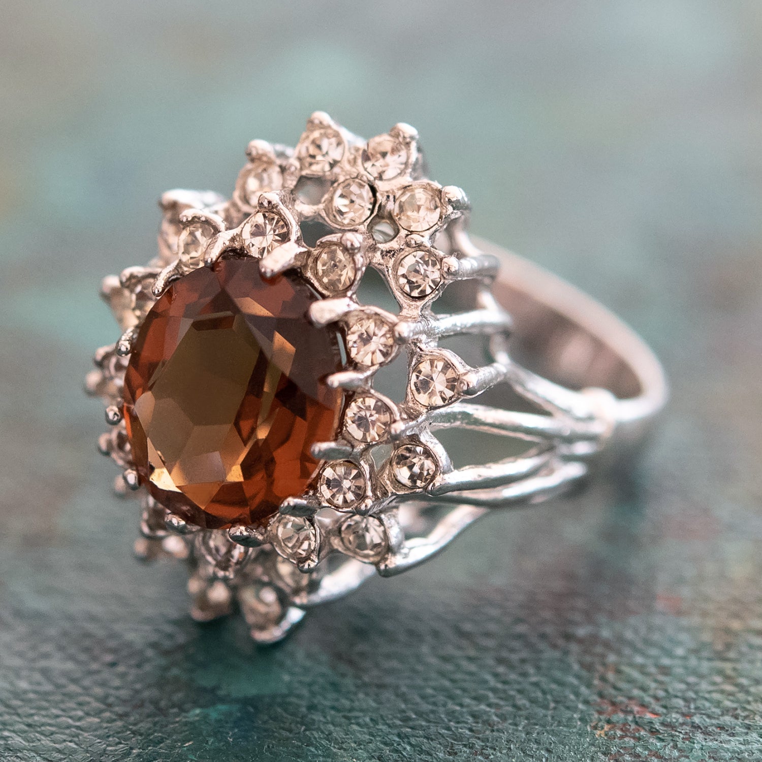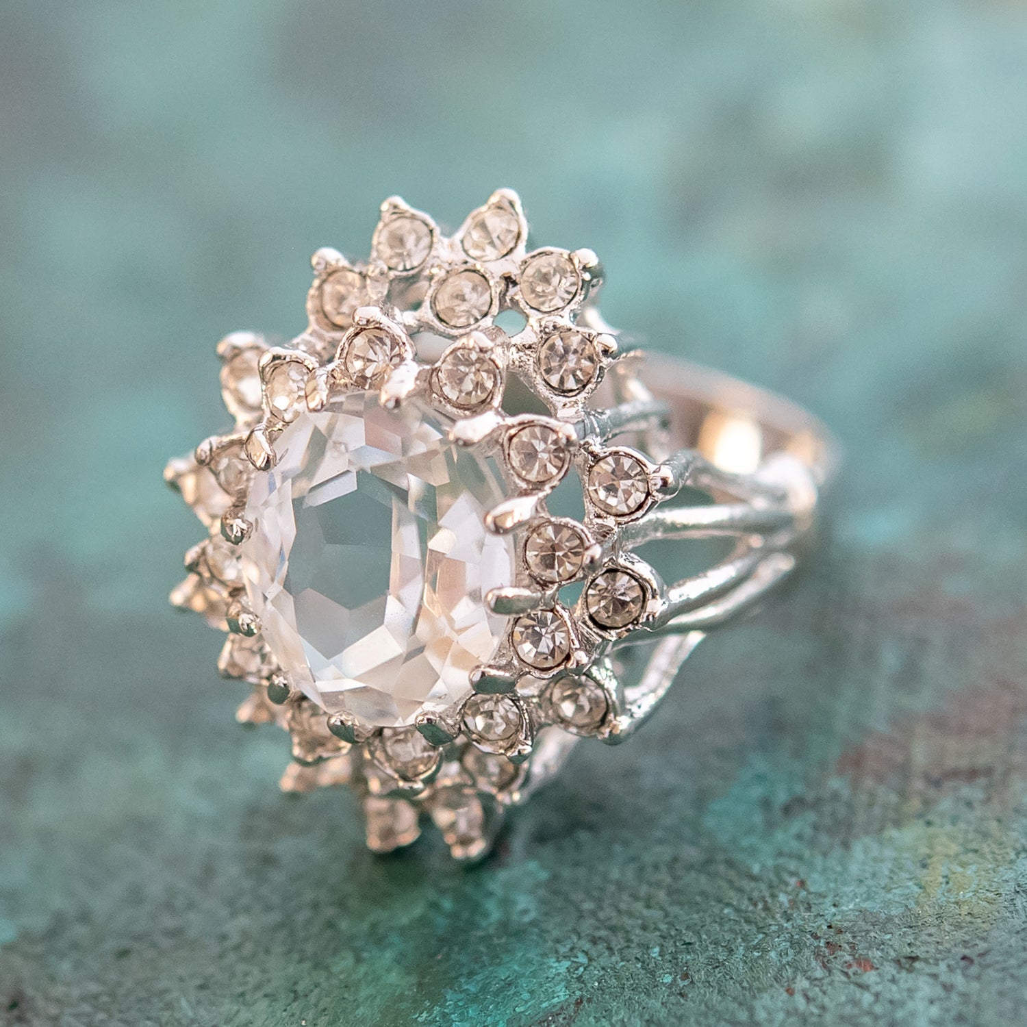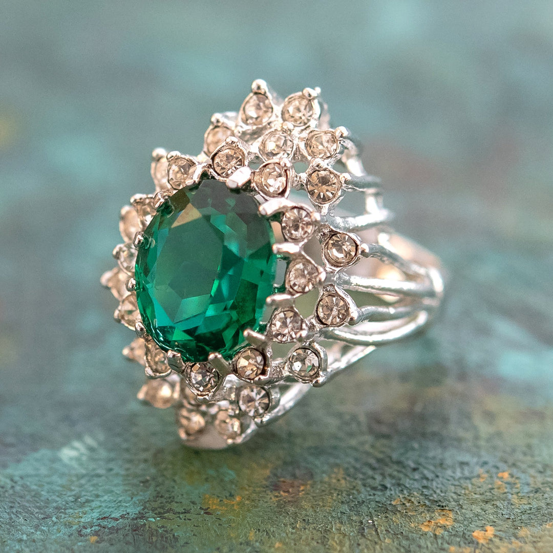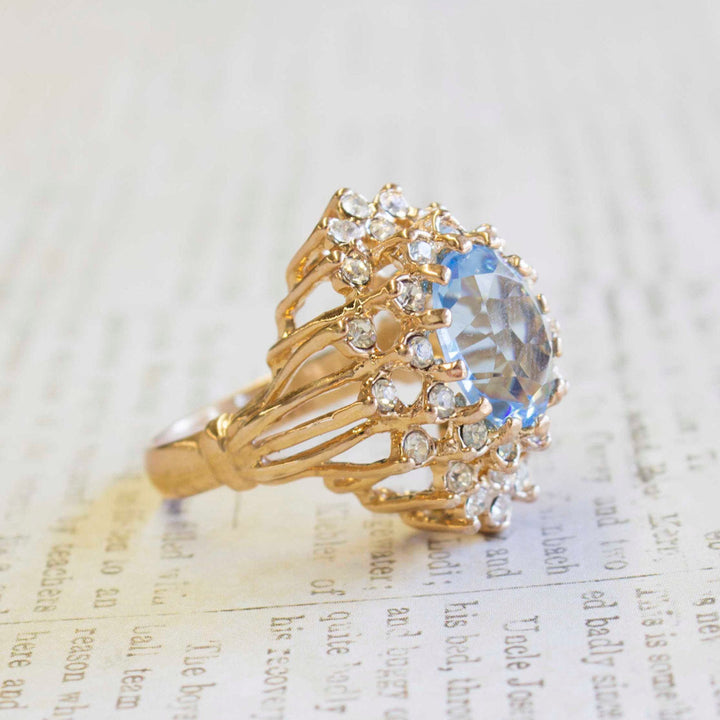 Vintage Women's Austrian Crystal Cocktail Ring 18k Gold Electroplated Birthstone Ring for Women by PVD Vintage Jewelry