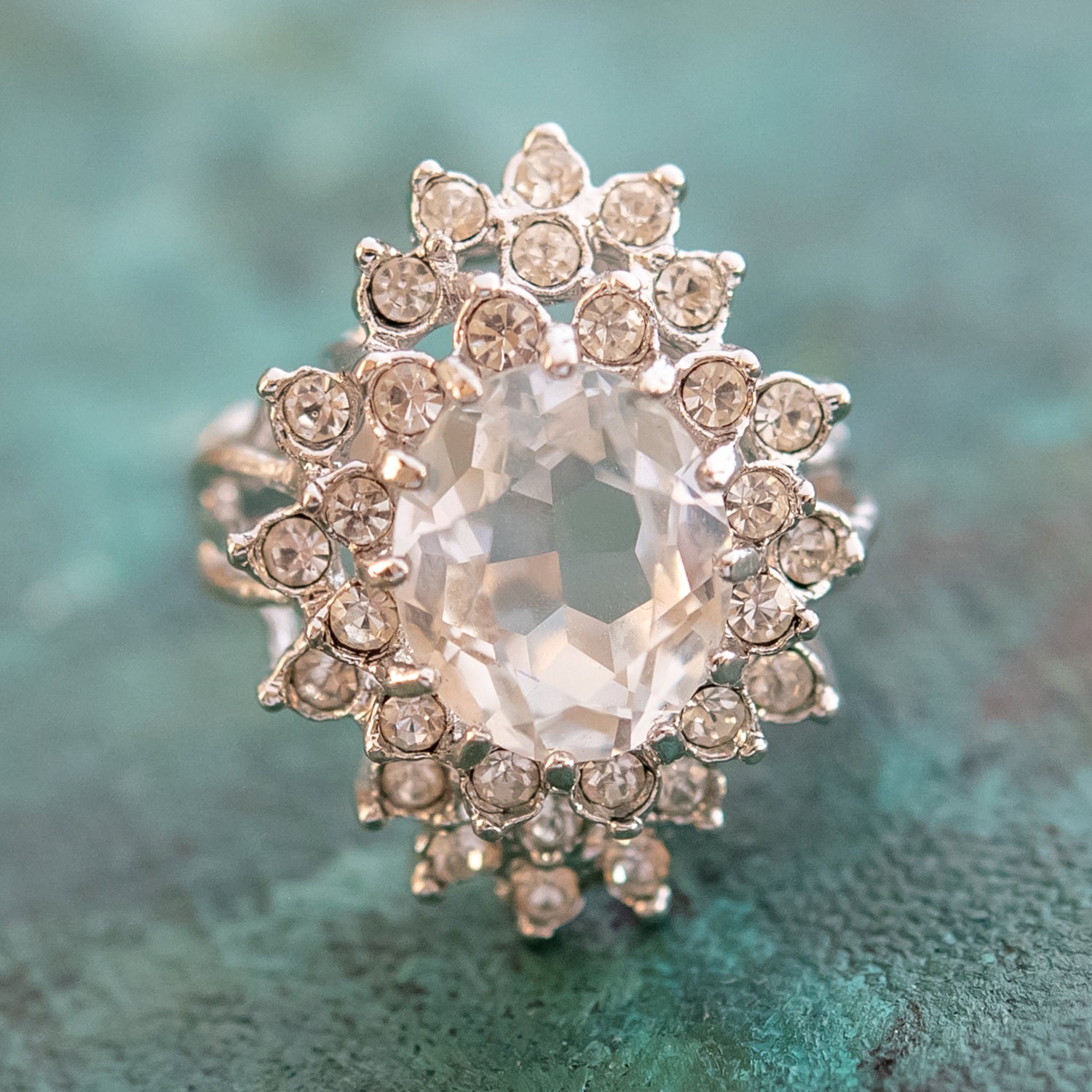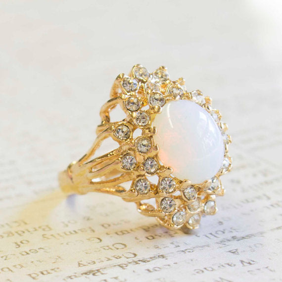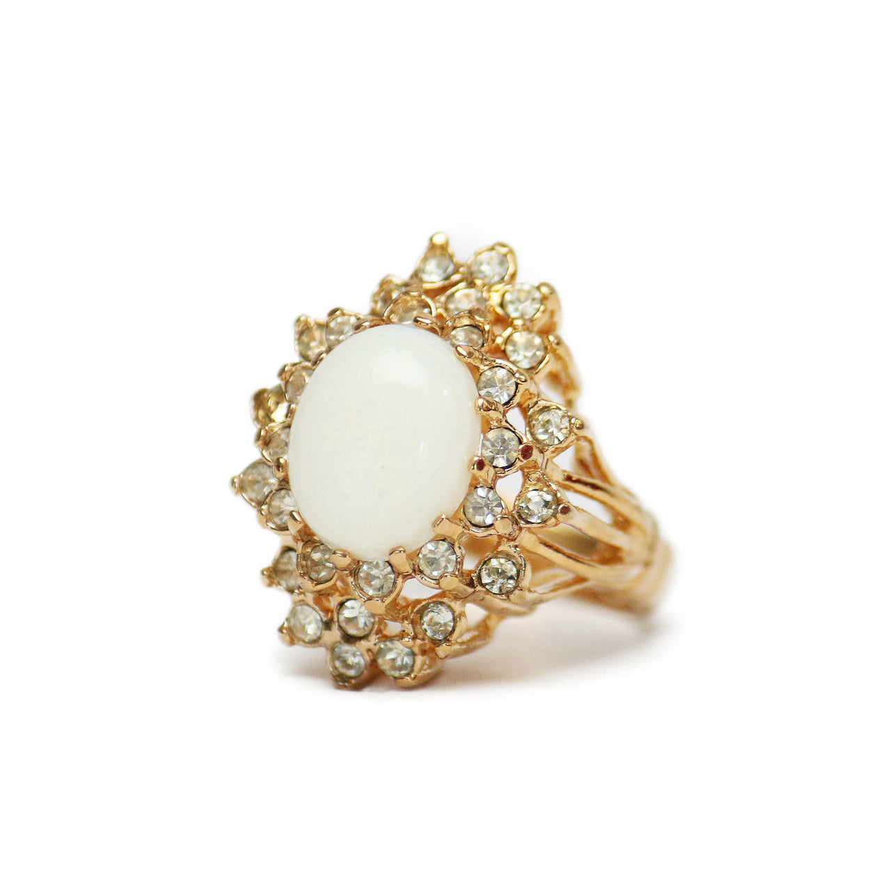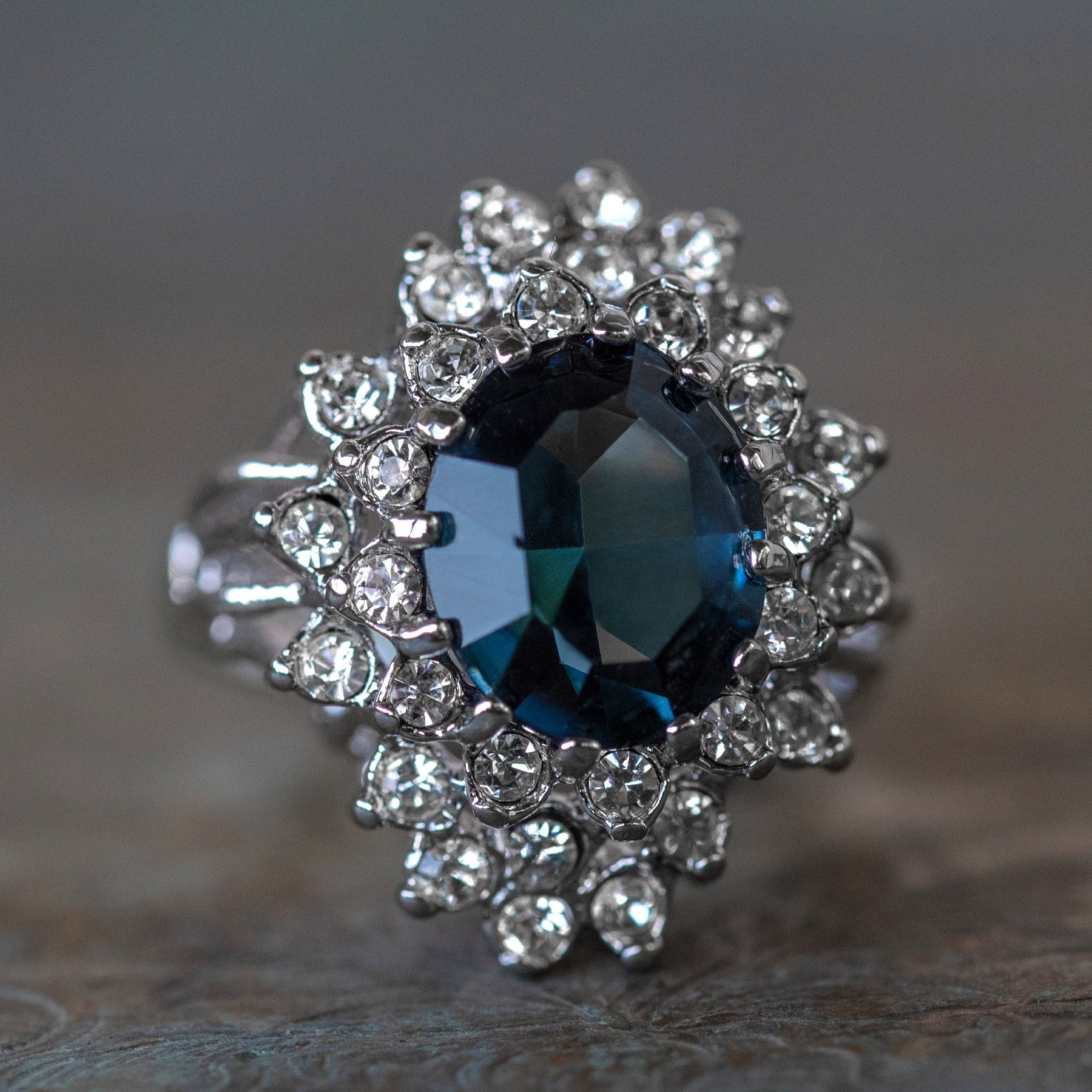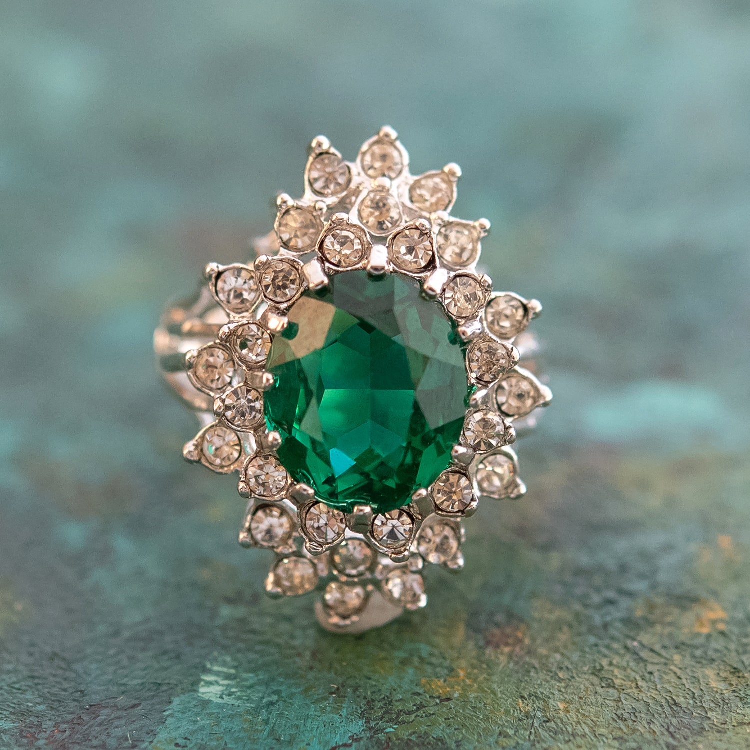 Vintage Women's Austrian Crystal Cocktail Ring 18k Gold Electroplated Birthstone Ring for Women by PVD Vintage Jewelry
