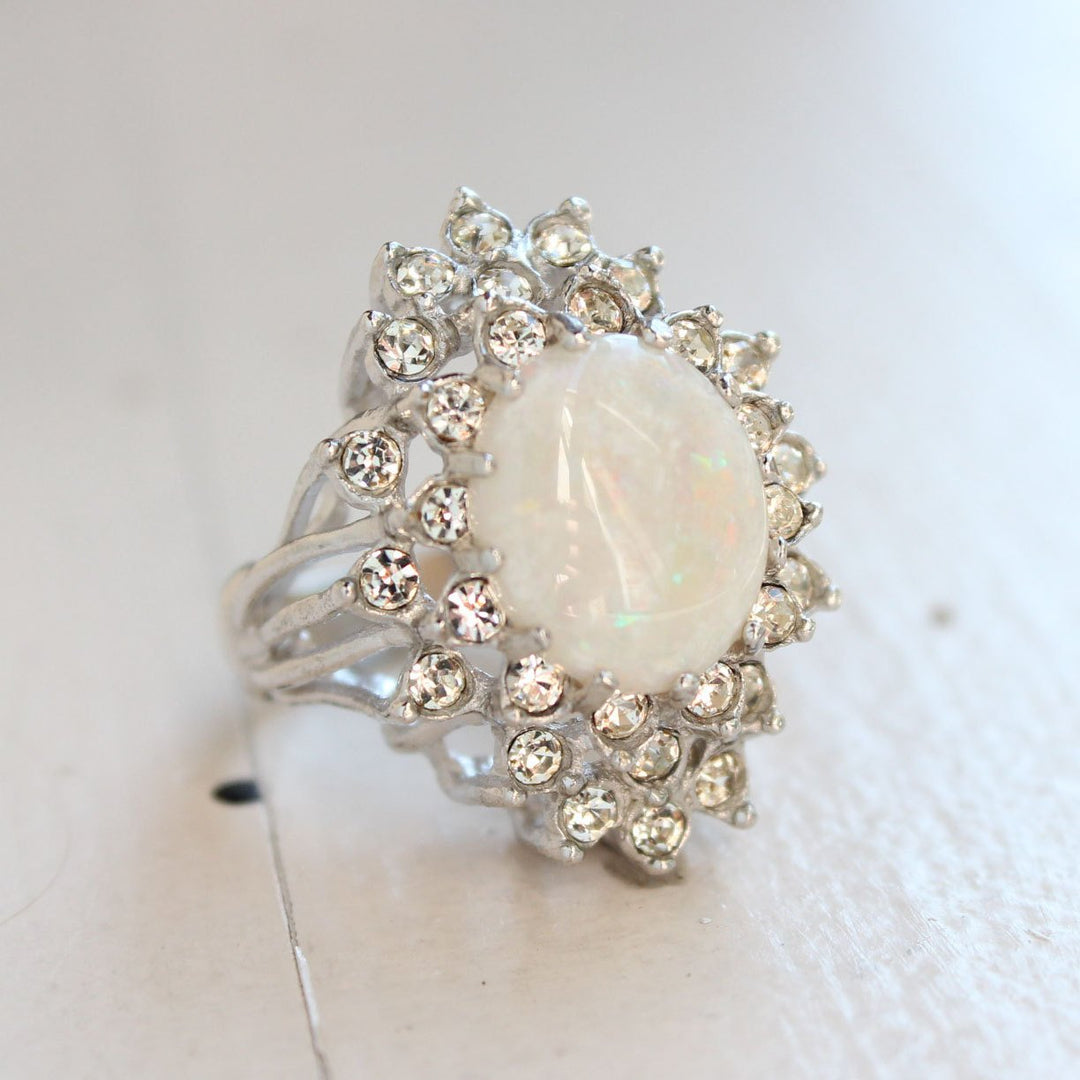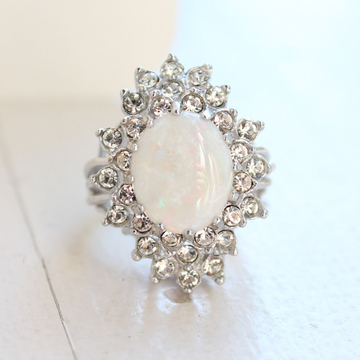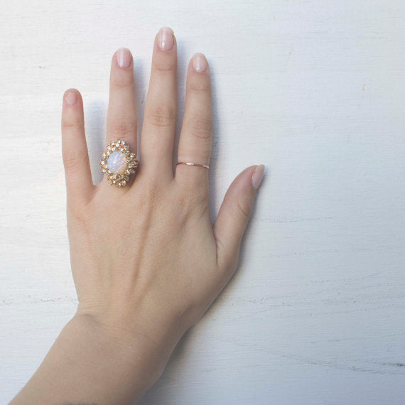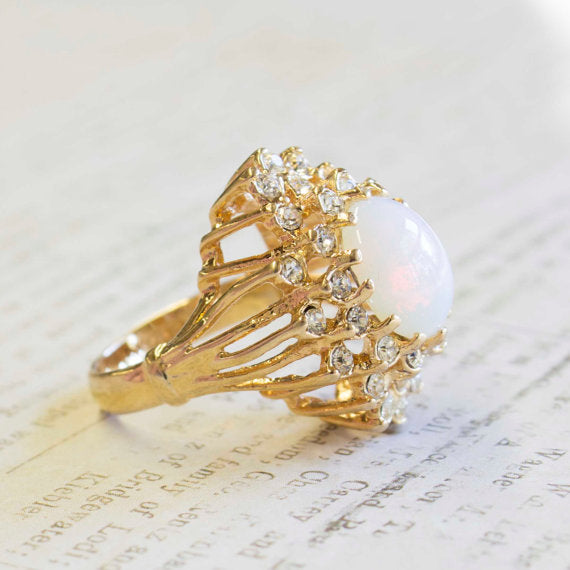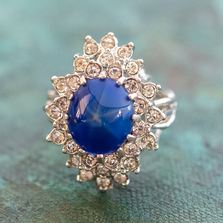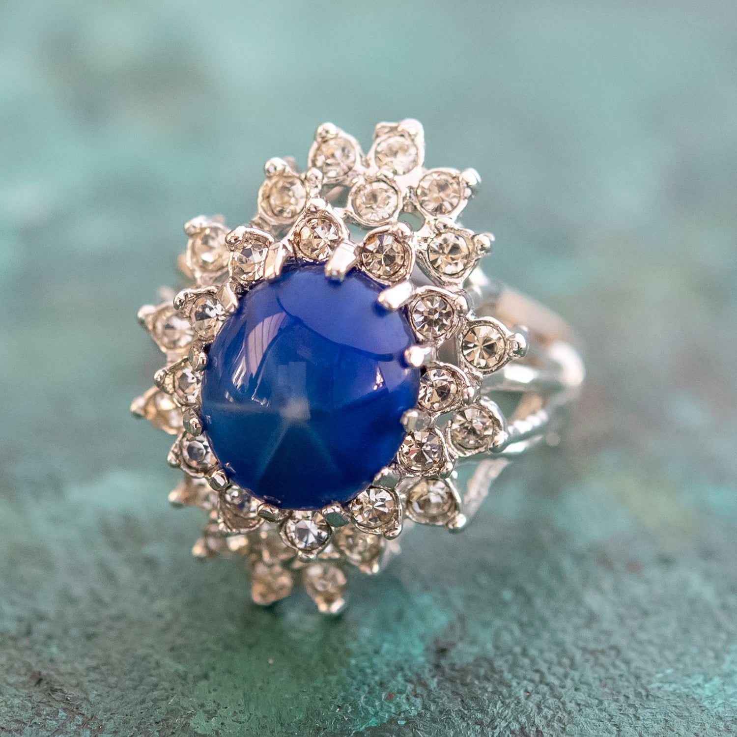 Vintage Women's Austrian Crystal Cocktail Ring 18k Gold Electroplated Birthstone Ring for Women by PVD Vintage Jewelry
