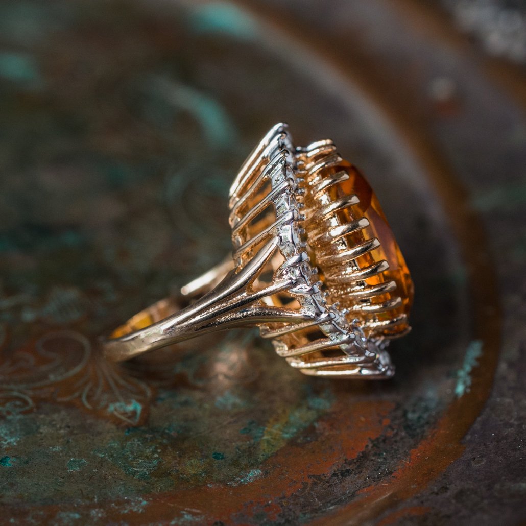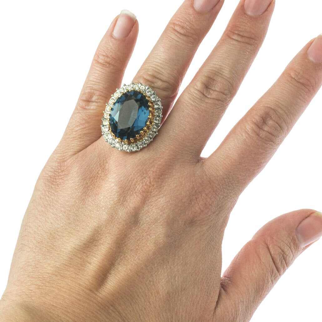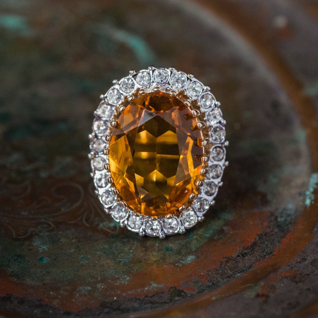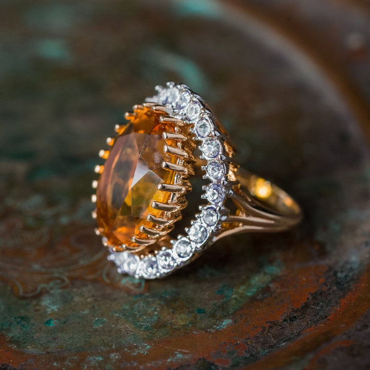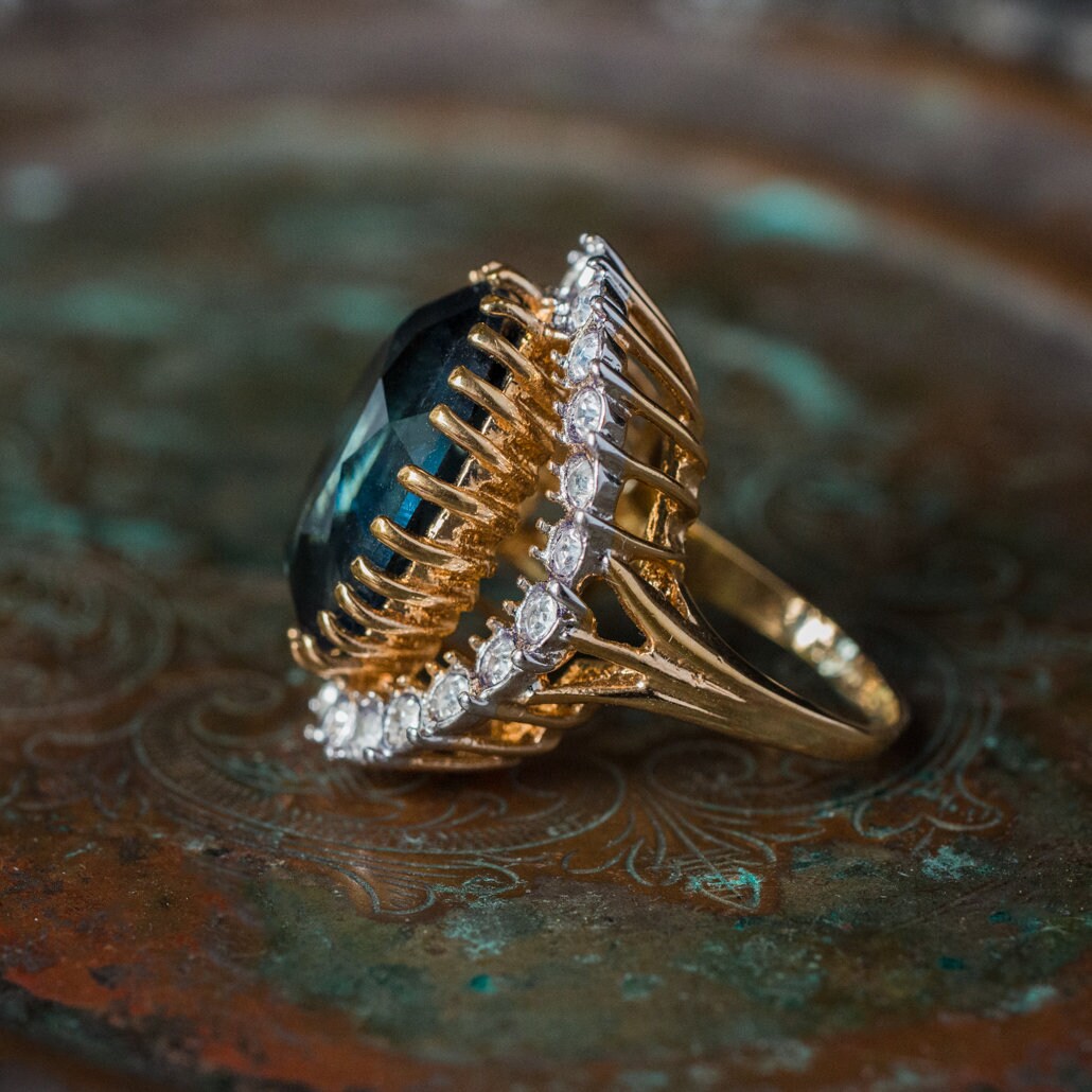 Vintage Women's Statement Crystal Cocktail Ring 18k Gold Electroplated by PVD Vintage Jewelry