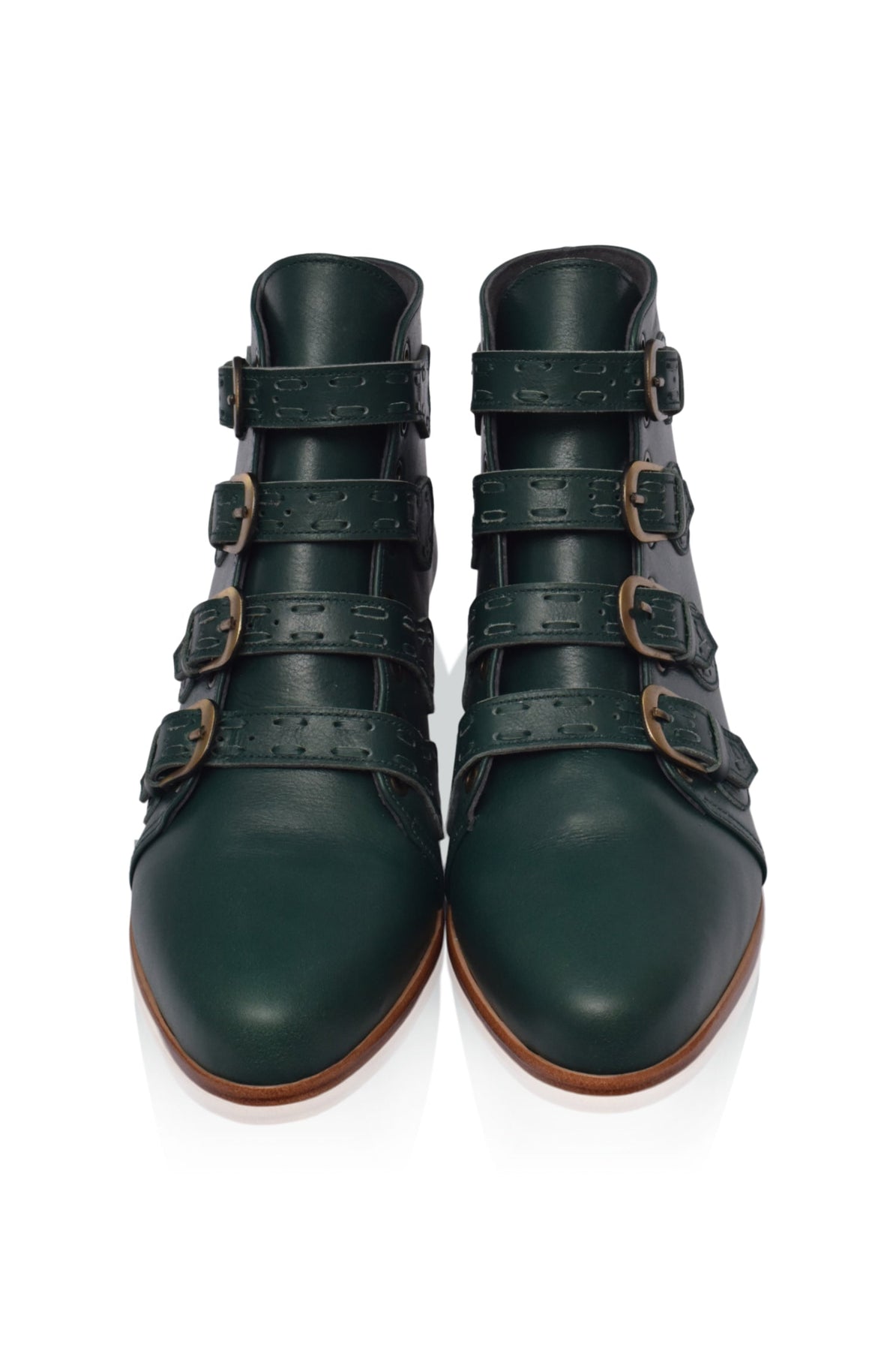 Inspired by Western theme our Wild Rose leather boots will make a cool-girl statement with any outfit. Handcrafted from genuine leather they are designed in almond toe silhouette, featuring leather stitch detailing and multiple buckle straps.
