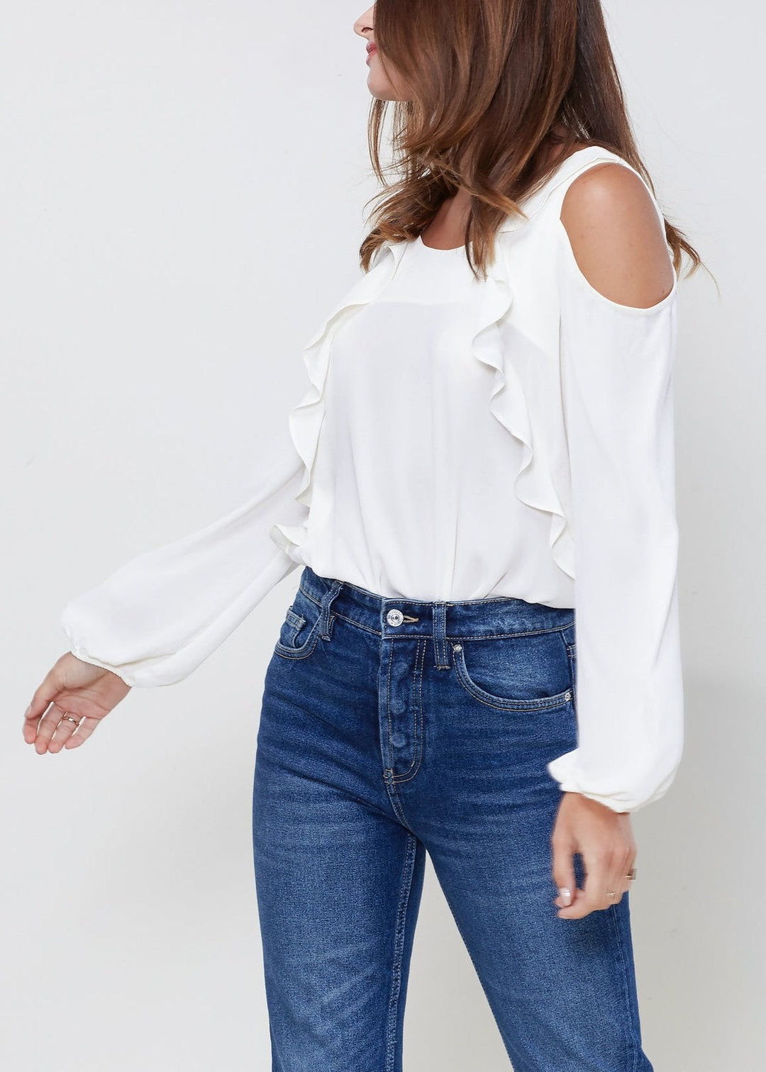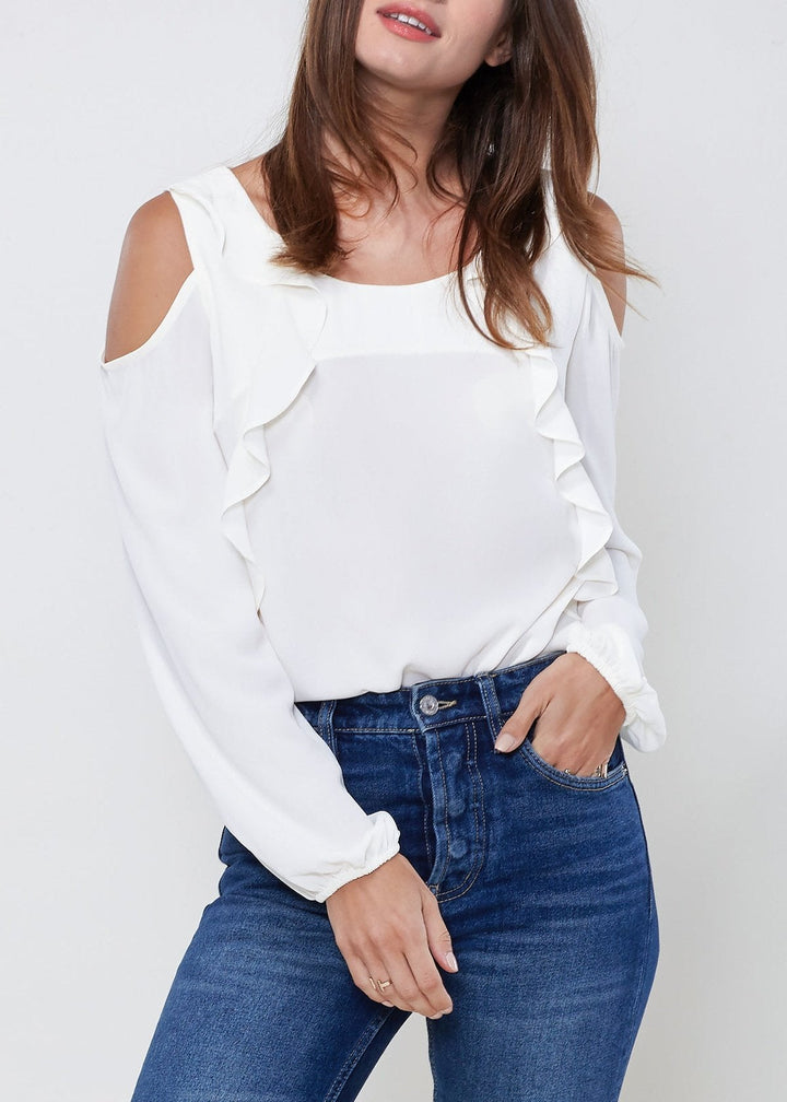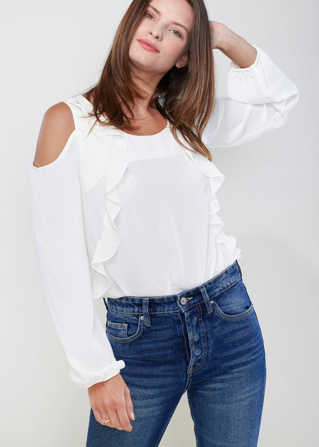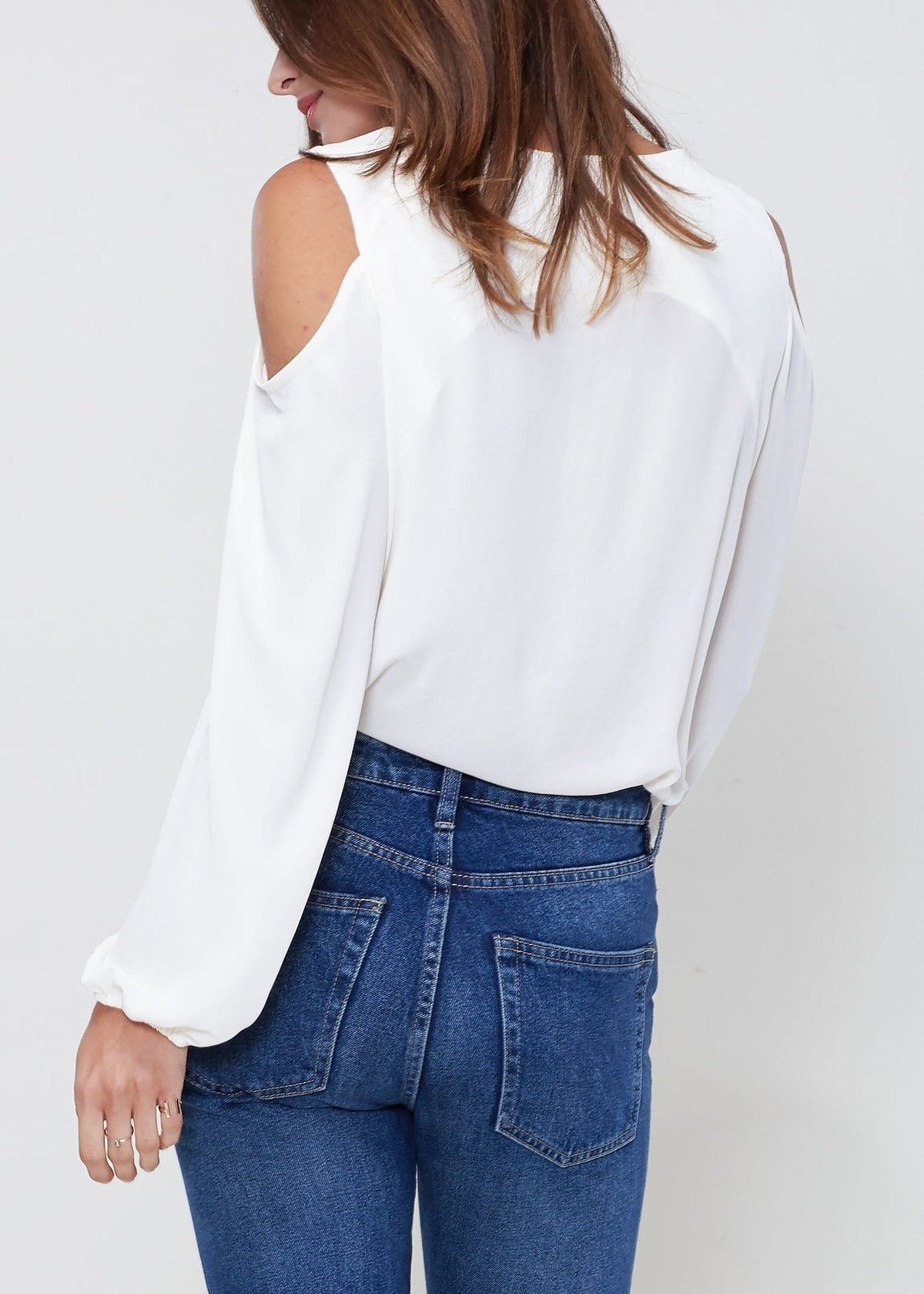 Women's Long Sleeve Open Shoulder Top In Ivory by Shop at Konus