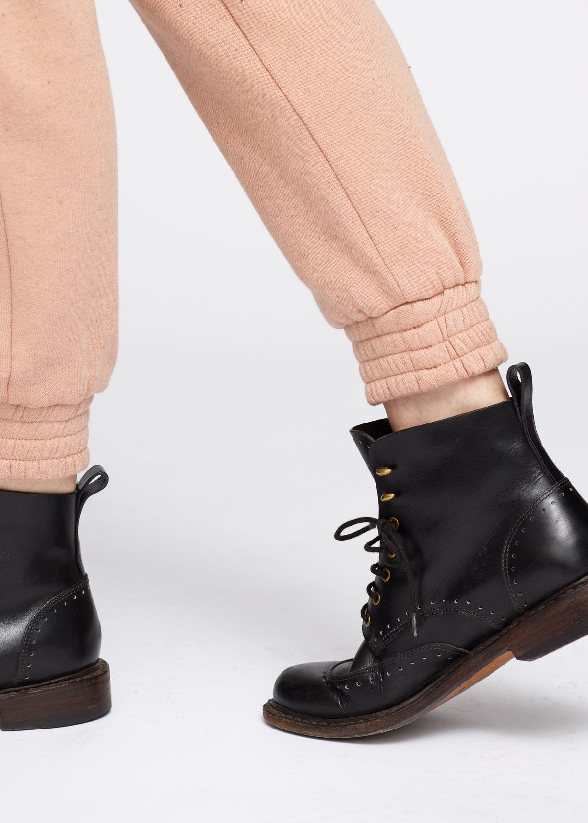 Lightweight sweatpants with modern peplum, brushed terry texture for comfort and style. Waist seam, slim fit for a flattering look.