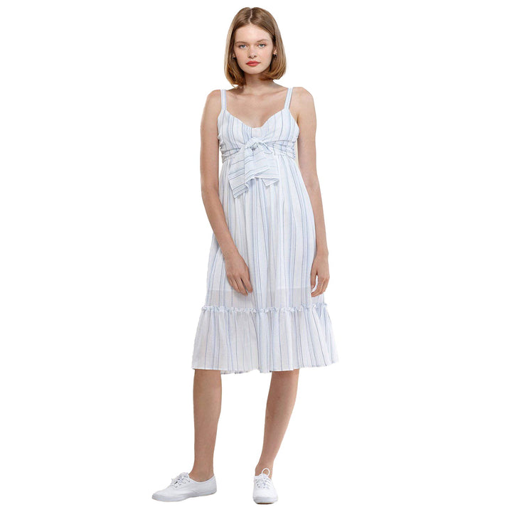 Women's Tie Front Hem Midi Dress in Oceanstripe by Shop at Konus